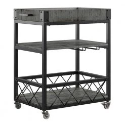 Grey Rustic Serving Cart with Wine Inserts And Removable Tray Top by HomeSullivan