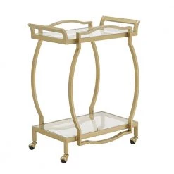 Gold Finish Clear Tempered Glass Metal Bar Cart by HomeSullivan
