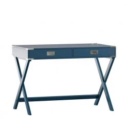 42 in. Twilight Blue X Base Wood Accent Campaign Writing Desk by HomeSullivan