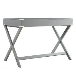 42 in. Frost Grey X Base Wood Accent Campaign Writing Desk by HomeSullivan