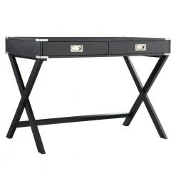 42 in. Vulcan Black X Base Wood Accent Campaign Writing Desk by HomeSullivan