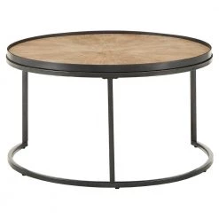 2-Piece 36 in. Oak Medium Round Wood Coffee Table Set with Nesting Tables by HomeSullivan