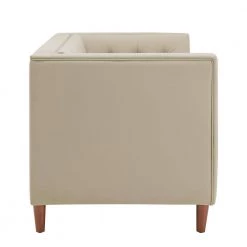 75 in. Beige Linen Walnut Finish 3-Seat Chesterfield Sofa by HomeSullivan