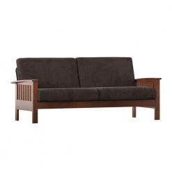 76.5 in. Square Arm Microfiber Straight Dark Brown Mission-Style Sofa by HomeSullivan