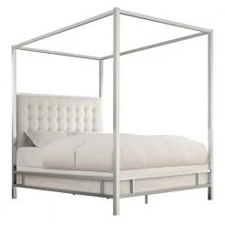 Beige Linen Gold Metal Upholstered Round Ottoman by HomeSullivan