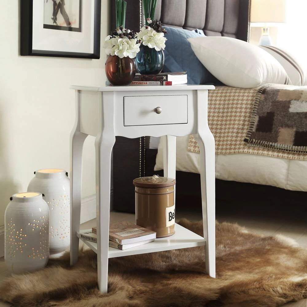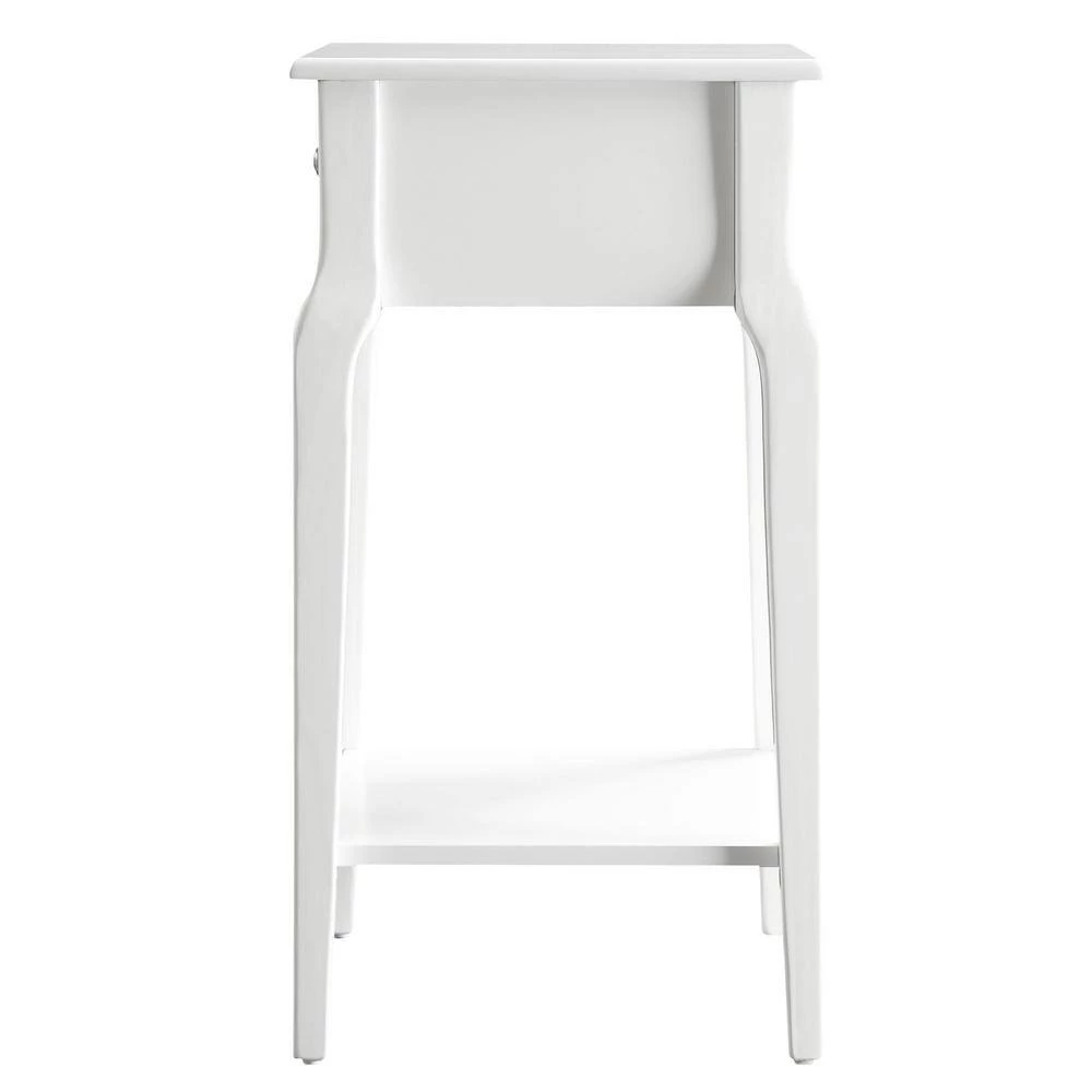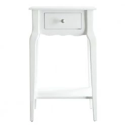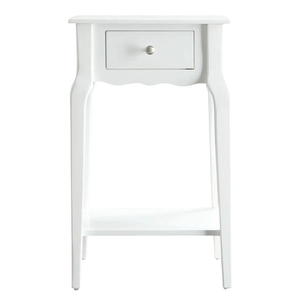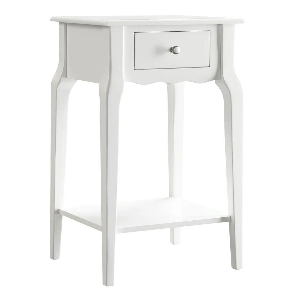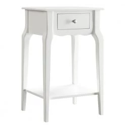 Functional and beautiful, the classically styled Accent Table With Shelf is the perfect addition to any bedroom space. The soft-close drawer provides storage for small essentials that need to be tucked away, while the bottom shelf adds an additional space to place your favorite books or magazines. A nickel finish drawer knob allows for easy in and out use and the rubberwood with birch veneer construction adds overall durability to withstand everyday use.