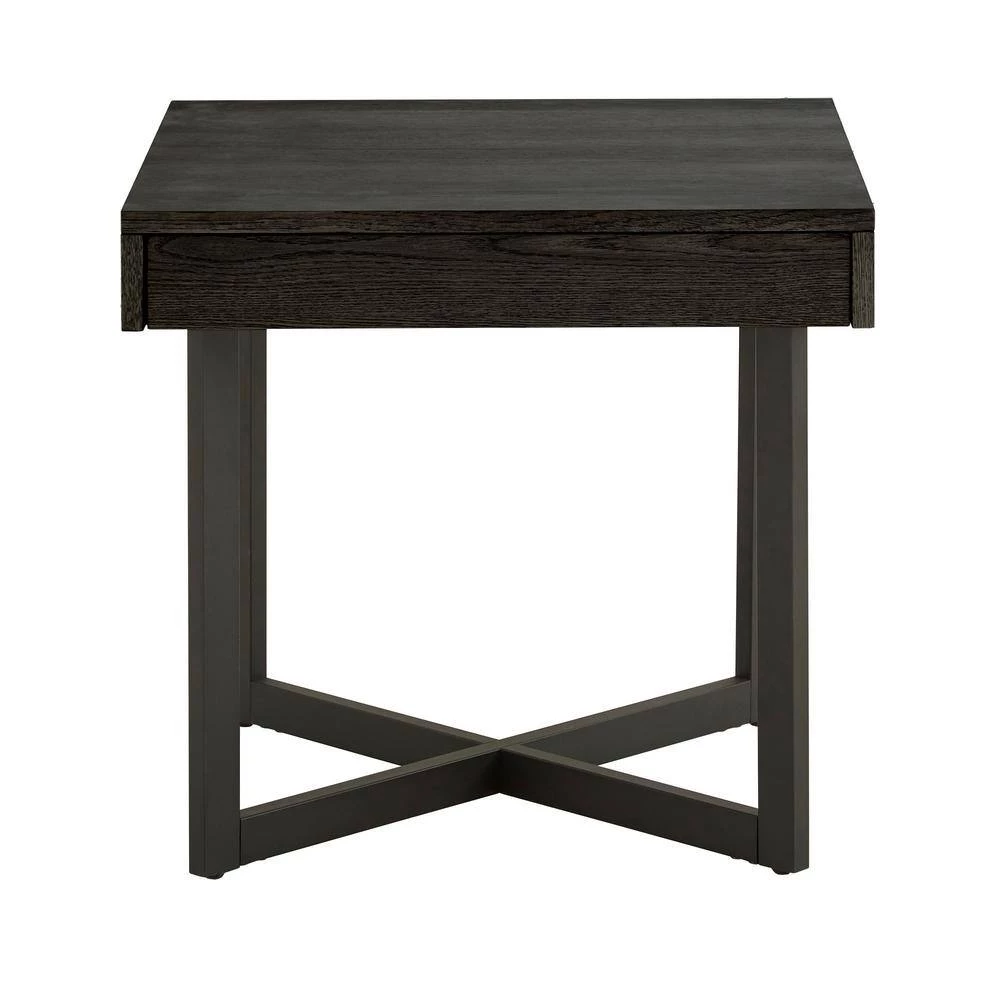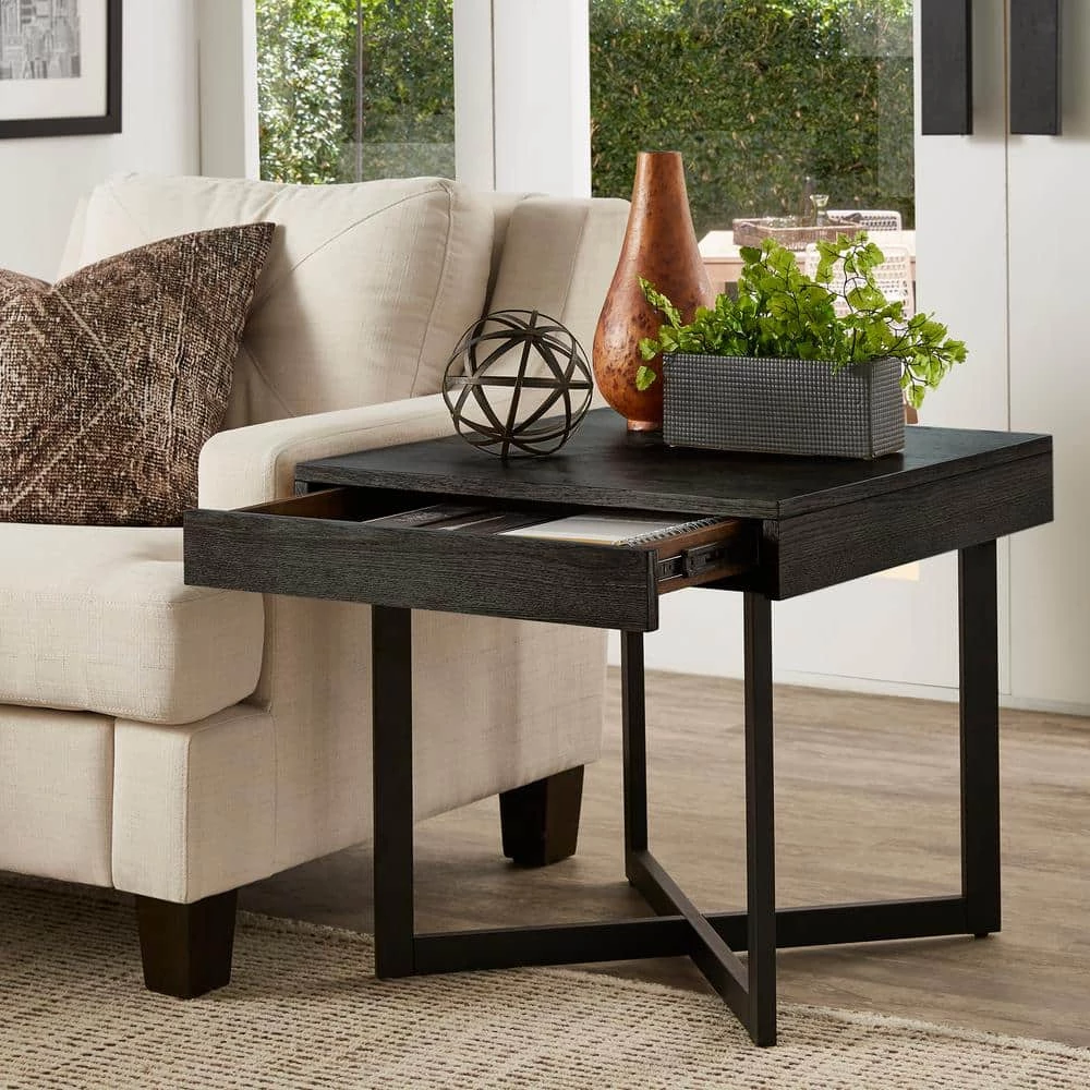 Get this Wood Finish End Table with One Drawer by HomeSullivan. The table’s understated design features a visible wood grain finish. The black metal frame accents contrast the wood tone perfectly and make this piece truly unique. This end table offers one spacious drawer. This is a perfect table to place in your home.