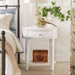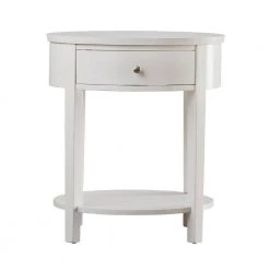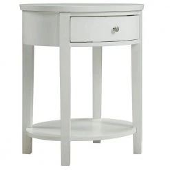 This beautifully crafted Lucas Oval Accent Table has a curved apron, tapered legs and an edge-rubbed finish. These.add to the inherent beauty of this accent table. The wood accent table comes in multiple finishes to match any room in the home.Enjoy extra storage space in the drawer and open shelf compartment.with a spacious drawer, easily store TV remote controls, magazines, phones, books and other items away and out of sight.Simple drawer pull accents its understated elegance.This end table will be right at home next to a bed or in the living room. The wood glides ensure that the drawer comes out smoothly.