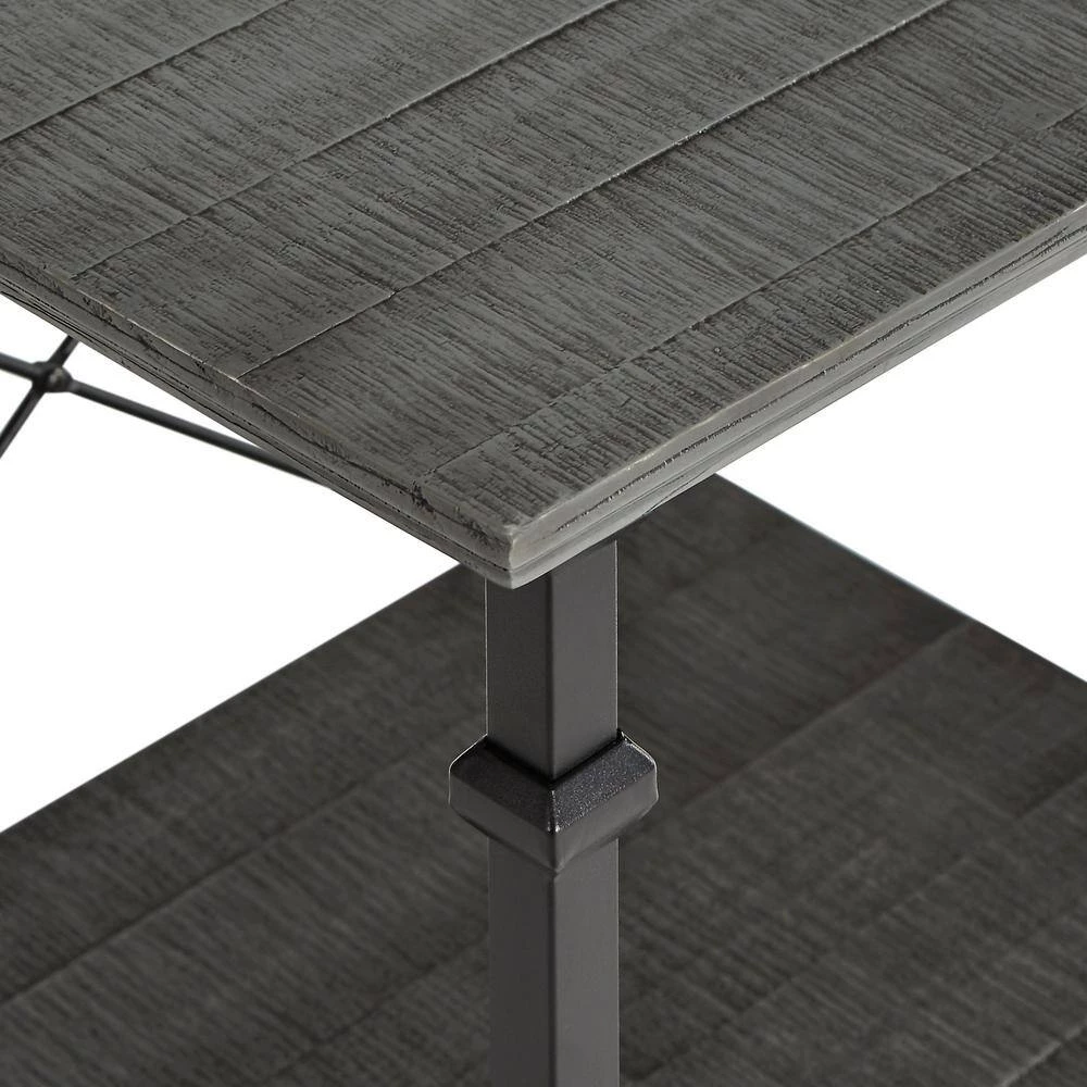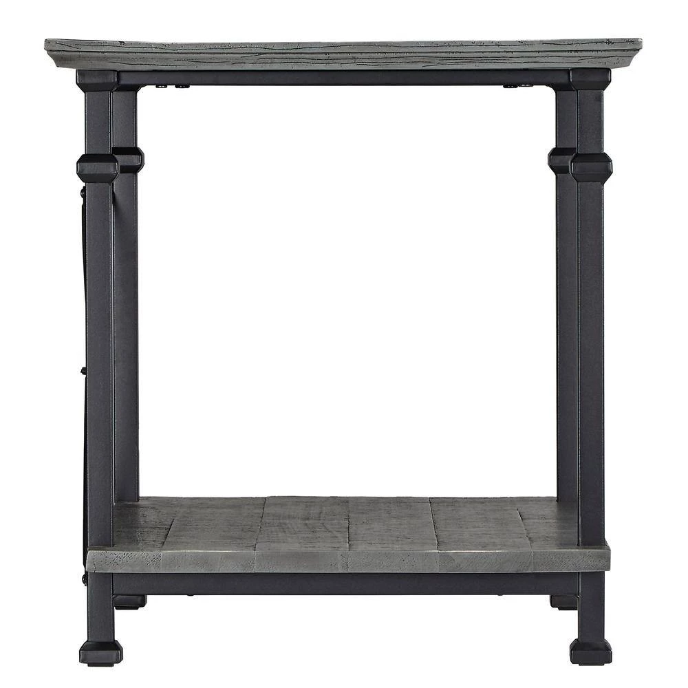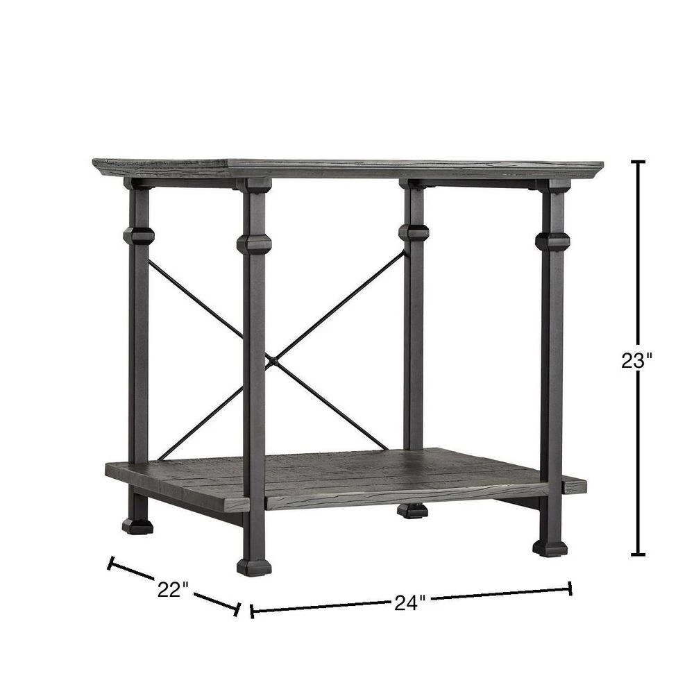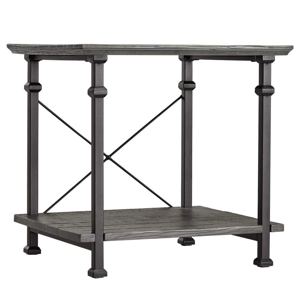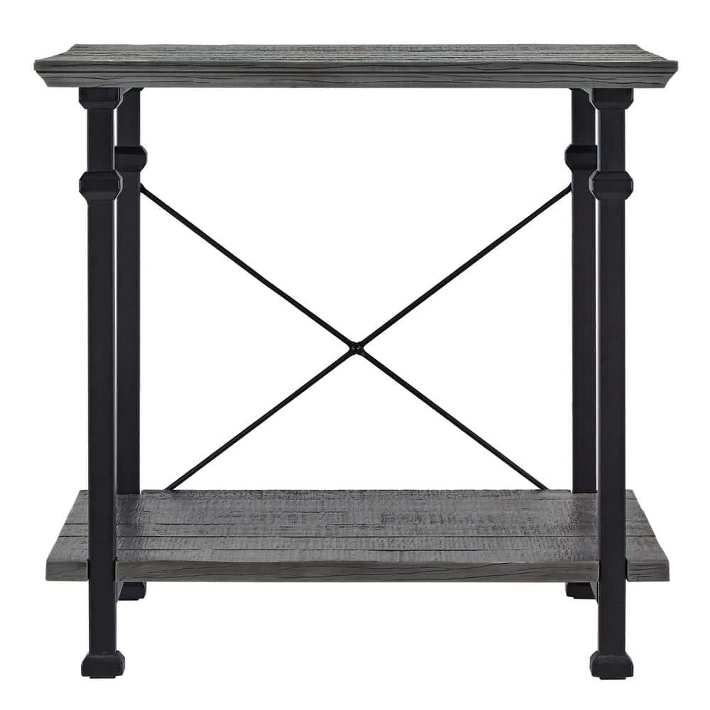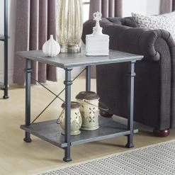 This side table has a unique metal and weathered wood design giving your living space a unique, vintage-industrial look.with its clean lines, sturdy metal frame, and a wooden surface this table is built to withstand years of use. The table features a practical, two-tiered design that can be used for storage and display of memorabilia, books, or home goods.