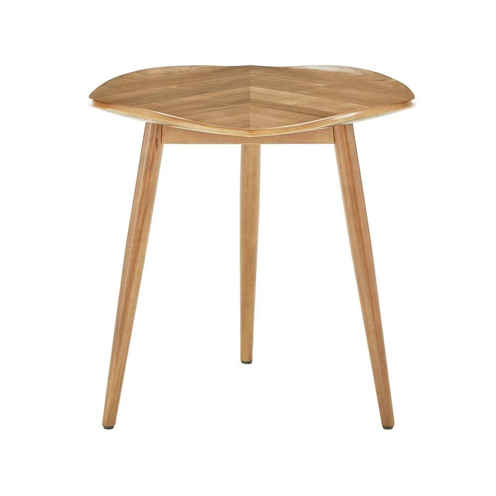 Get this Wood Finish Leaf Shape End Table from HomeSullivan for your living space. A true stunning artfully designed coffee and end tables that bring the mid century modern design to your home. With a smooth curved leaf shape and leaf grain pattern radiating outwards, this leaf design coffee and end table will become a conversation piece for your guests to talk about. It is a creative piece with an artisan quality you will love for years to come.