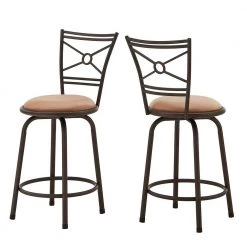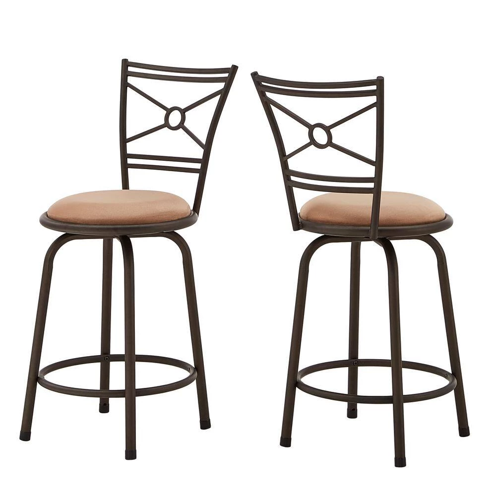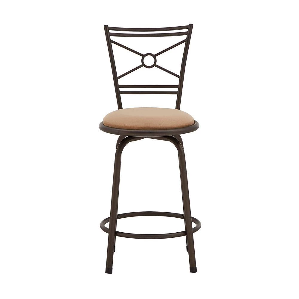 With the Shapel Bronze Finish Circular Center Criss Cross Back 3pc Barstools from Weston Home, creating a stylish sitting area has never been easier! Sophisticated geometric detailing lines the backrest of these stools, while a plush, soft-touch beige cloth seat awaits to comfortably care for you and your guests. The height of each stool can be easily adjusted to accommodate the needs of your space: just add or remove a leg extension to create a seating arrangement that’s perfect for your unique space!