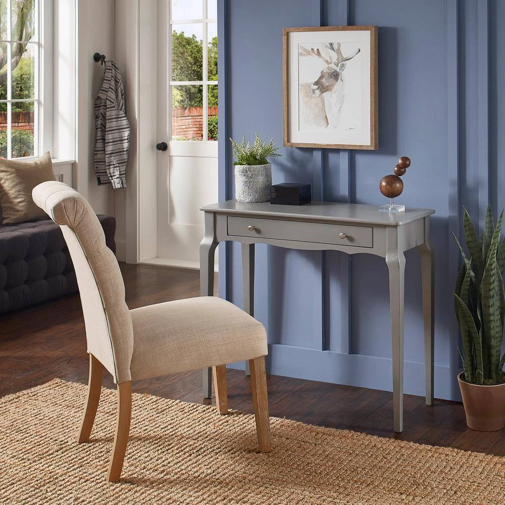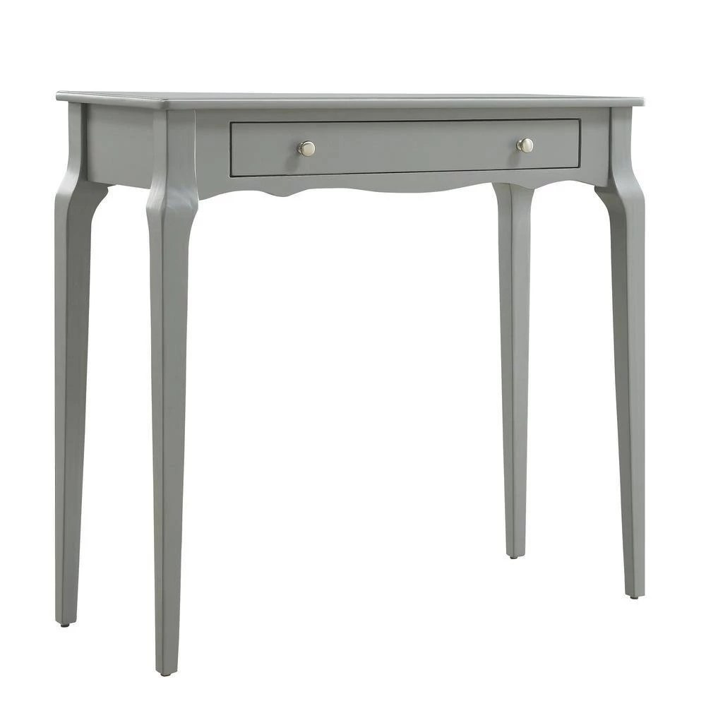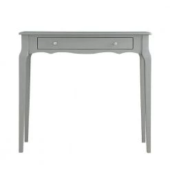 Give your home a touch of colorful style with this curvaceous console table. This table features a fully functioning drawer and open roomy shelf, perfect for a little extra storage. It’s large, spacious table top is the perfect place to display some of your favorite belongings. Available in a variety of colors, so you can match it with any style or color scheme.