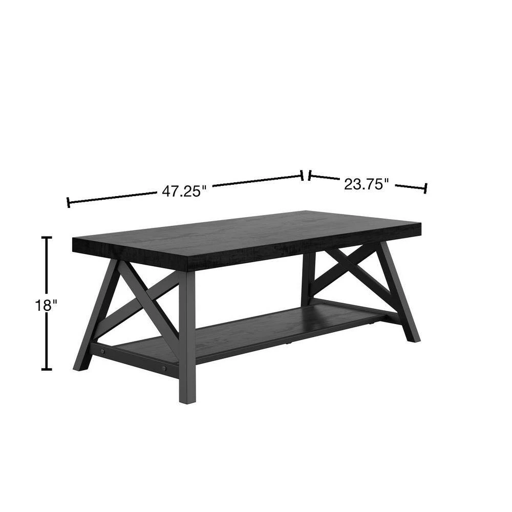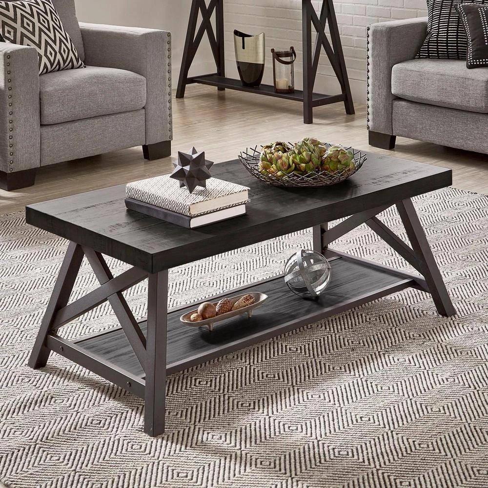 Display rustic, yet modern charm in your living room with the HomeSullivan Coffee Table. The perfect mix of industrial and natural elements come together with this piece. A weathered wood table top complements the sharp features of the metal X-cross base to display a unique, contemporary look for your home. The open bottom shelf offers just enough space to display home decor items.