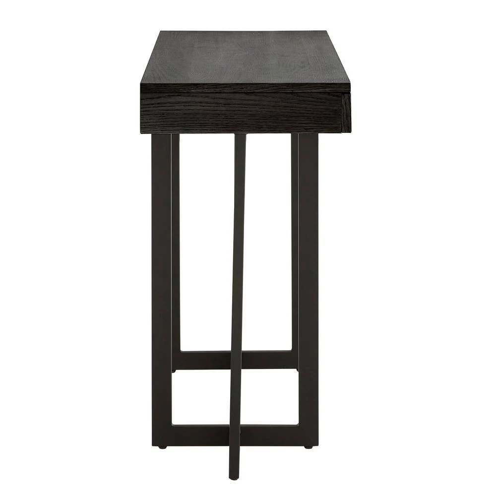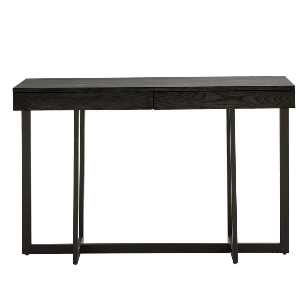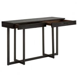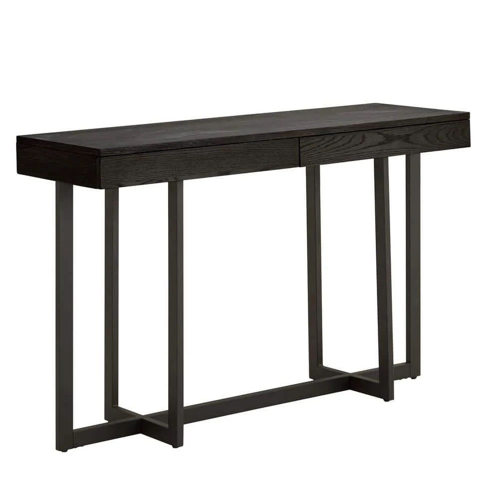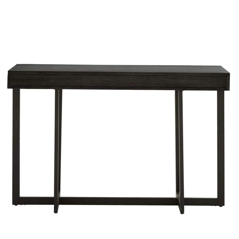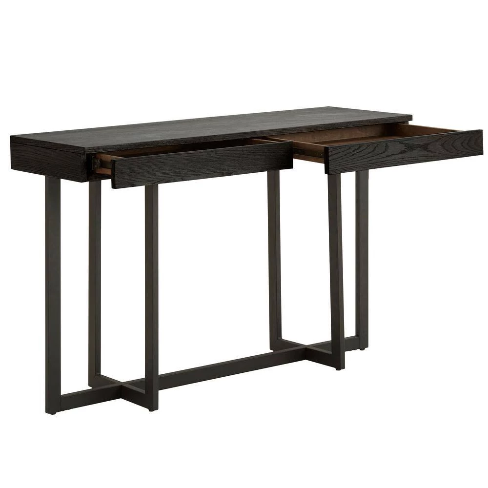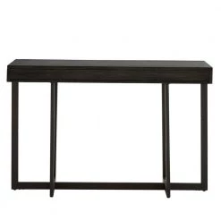 Give this Wood Finish Sofa Table with Two Drawers by HomeSullivan. The table’s understated design features many wood finishes of your choice. The black metal frame accents contrast the wood tone perfectly and make this piece truly unique. This sofa table offer two spacious drawers. This is a perfect table to place in your home.