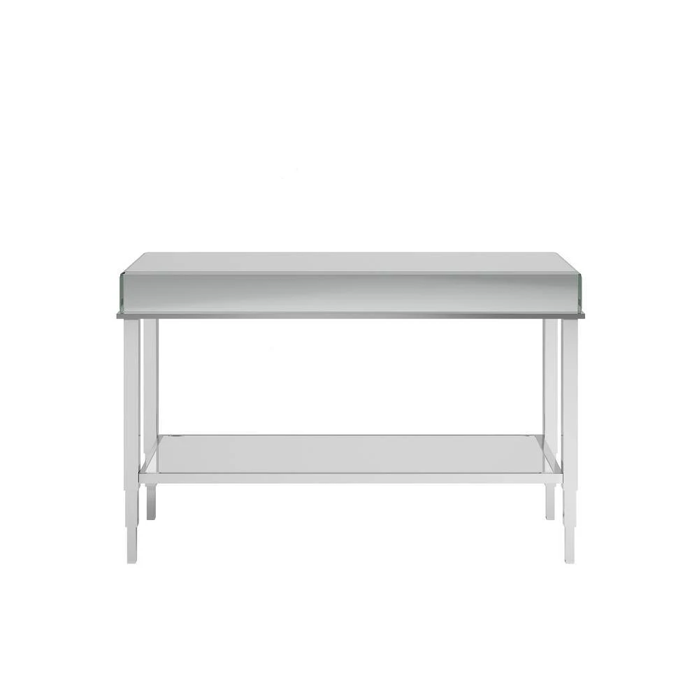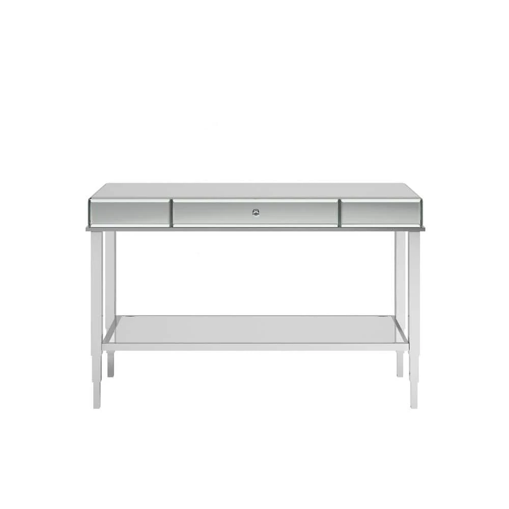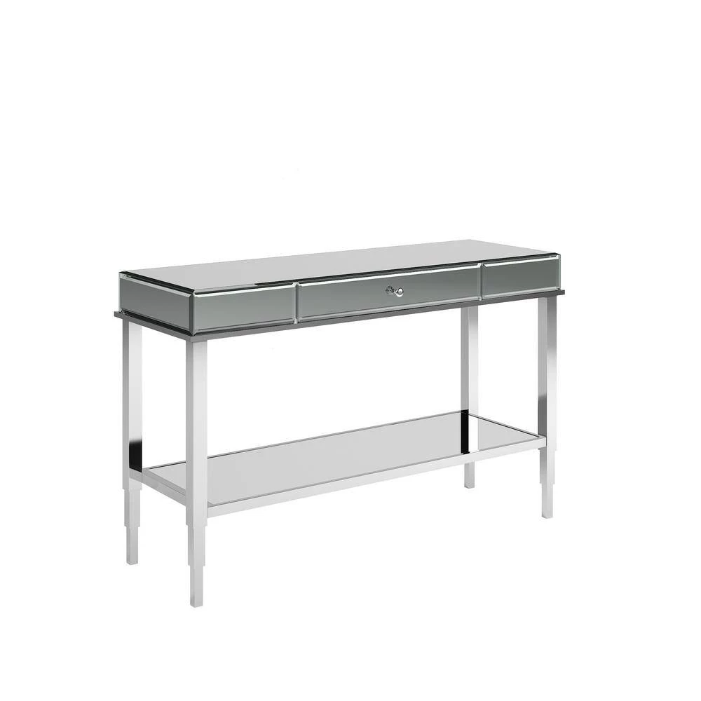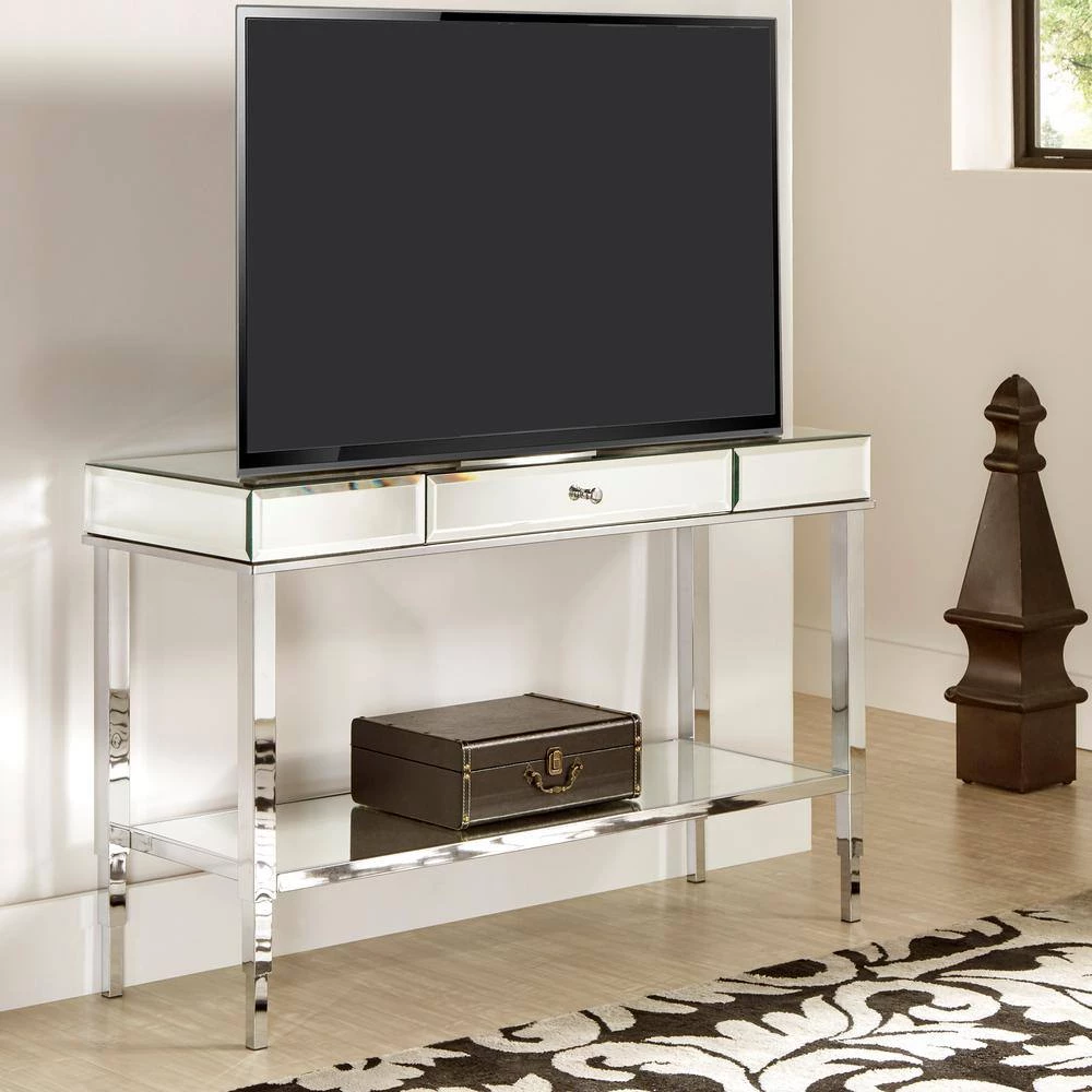 Create your dream luxury space with the Jannice Mirrored Metal Sofa Table Tv Stand With Drawer. The drawer provides secure storage for small essentials, while the bottom shelf allows space to display your favorite home goods and novelties. The mirrored surface adds a glam theme to your home and the metal frame ensures durability to withstand everyday use.