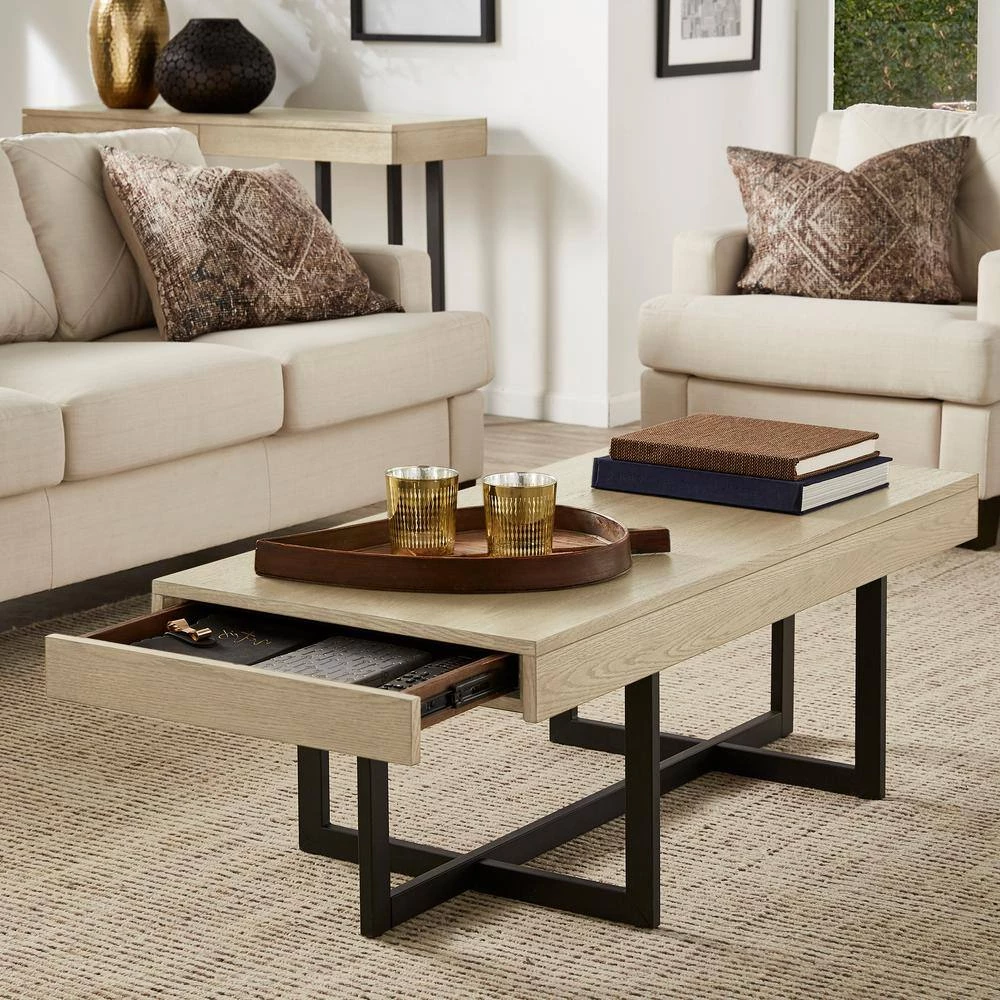 Give this Wood Finish Table with Drawers by HomeSullivan. The table’s understated design features many wood finishes of your choice. The black metal frame accents contrast the wood tone perfectly and make this piece truly unique. This is a perfect table to place in your home.