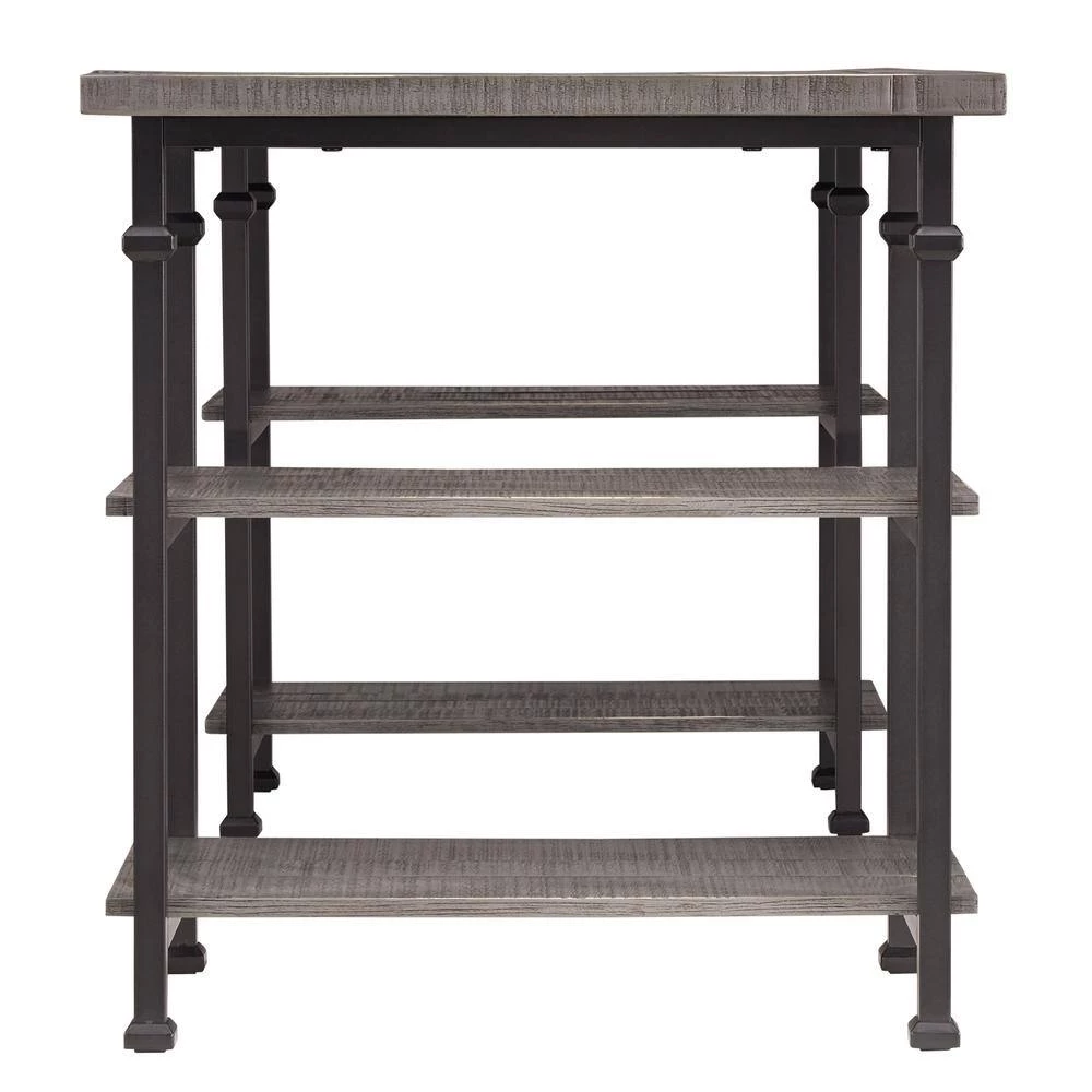 Give your room a unique accent with the HomeSullivan grove place rustic desk. The distressed surfaces of the desk create the perfect industrial-rustic feel that ties together with any space. The solid hardwood surfaces are supported by sand through black metal supports for a beautiful juxtaposition.