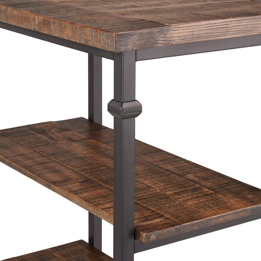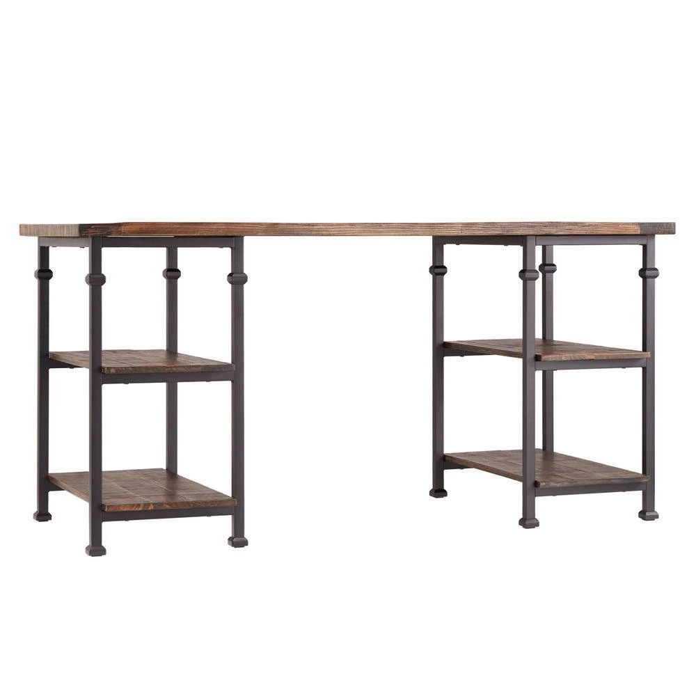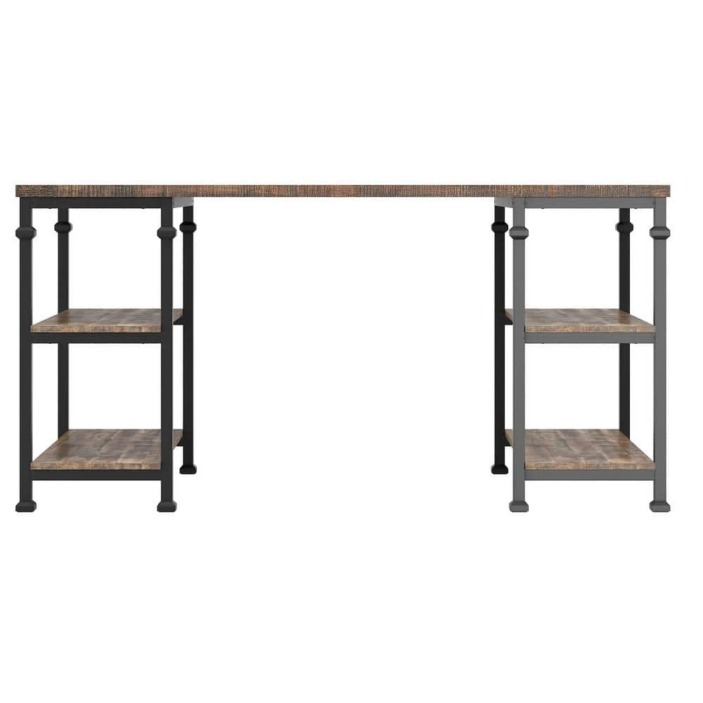 Give your room a unique accent with the HomeSullivan grove place rustic desk. The distressed surfaces of the desk create the perfect industrial-rustic feel that ties together with any space. The solid hardwood surfaces are supported by sand through black metal supports for a beautiful juxtaposition.