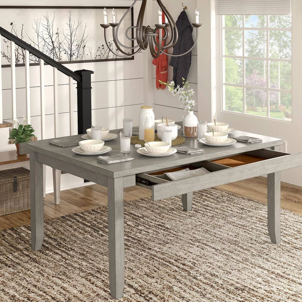 60 in. Rectangle Grey Solid Wood Dining Table with 2-Drawers by HomeSullivan - Image 6