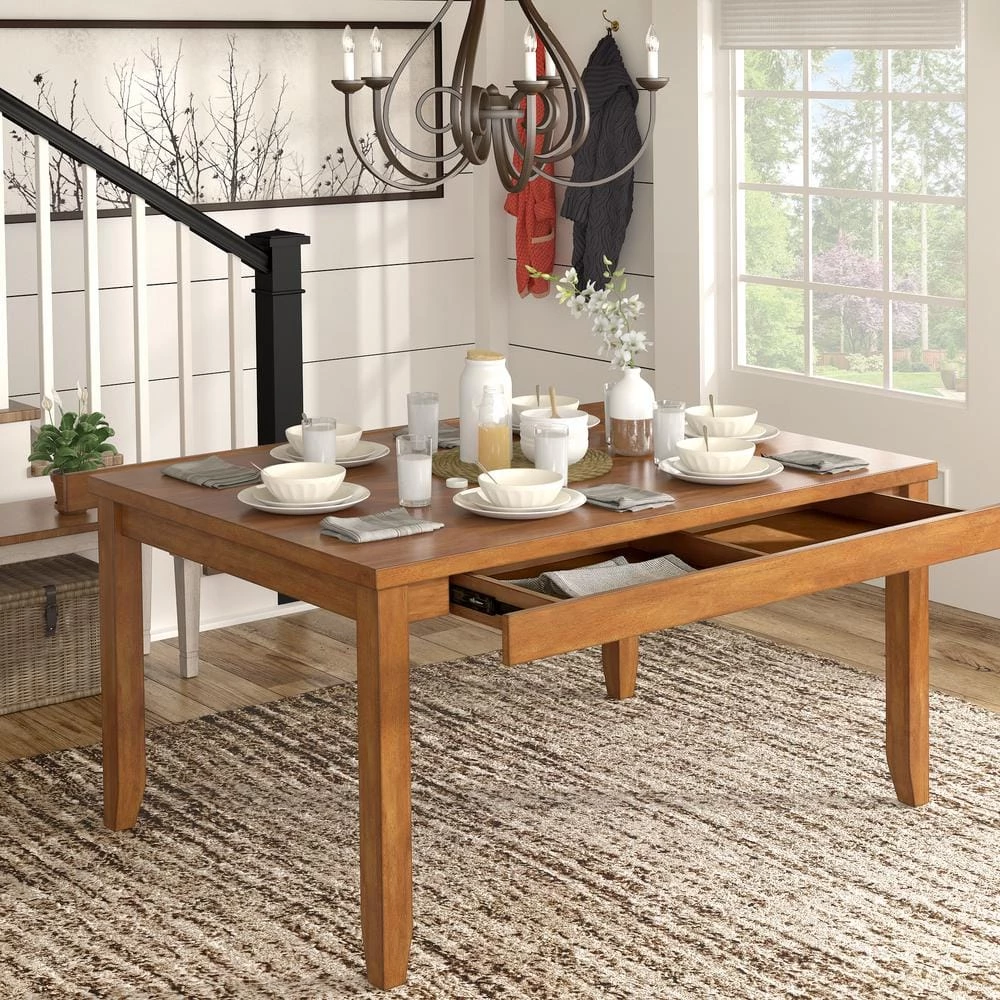 60 in. Rectangle Oak Solid Wood Dining Table with 2-Drawers by HomeSullivan