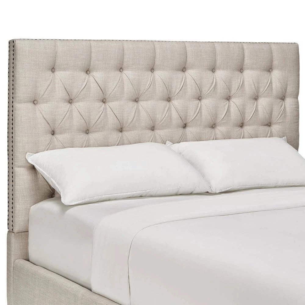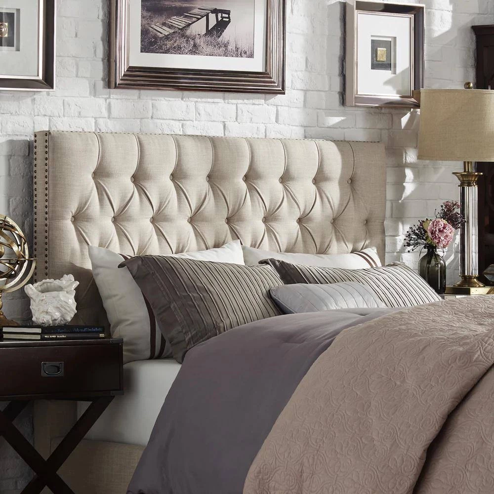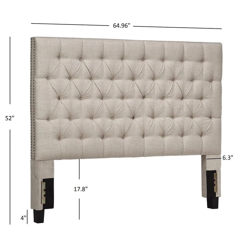 Create a romantic bedroom retreat with the Tufted Headboard from HomeSullivan. Elegant and neutral, the soft linen upholstery receives upscale details that create a lovely backdrop for your decor. Accent with pops of color and pattern for an envigorating look, or with soft solid neutral for an elegant finish.