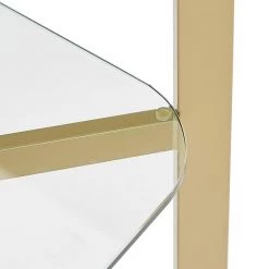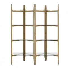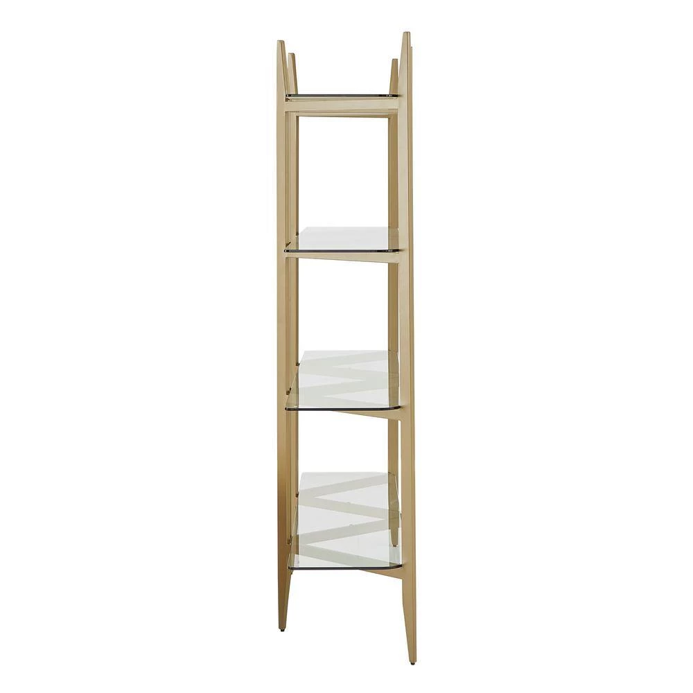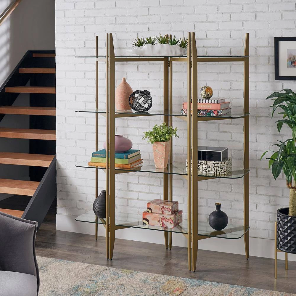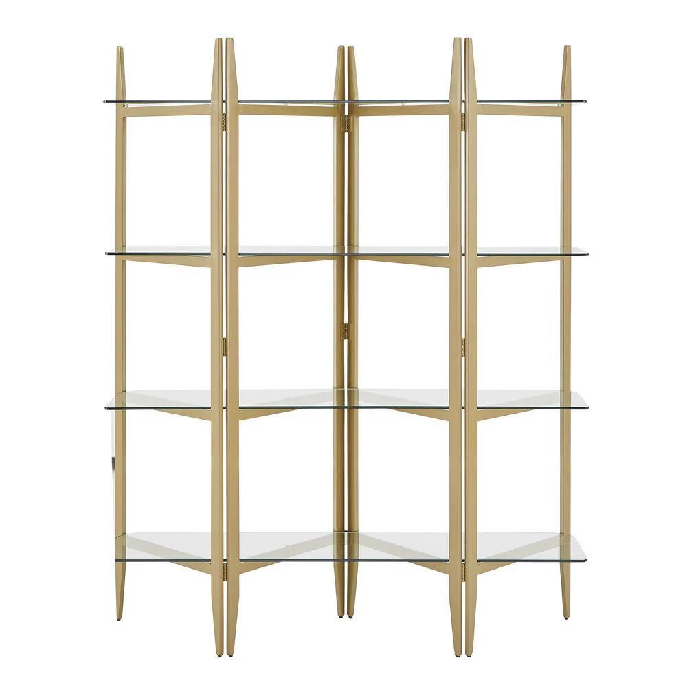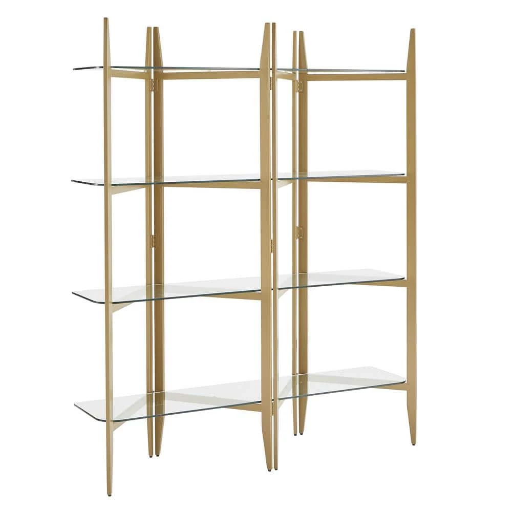The Gold Finish Metal Bookcase with Glass Shelves from HomeSullivan delivers sleek style to any home. The open design of this piece allows for the spotlight to be placed on your prized possessions while also lending an airy appearance. A resilient gold-finish metal frame supports four, clear, tempered glass shelves, promising plenty of strength and room for your belongings.