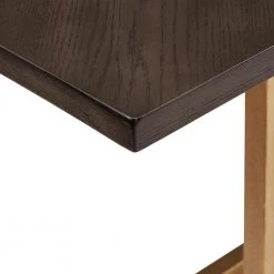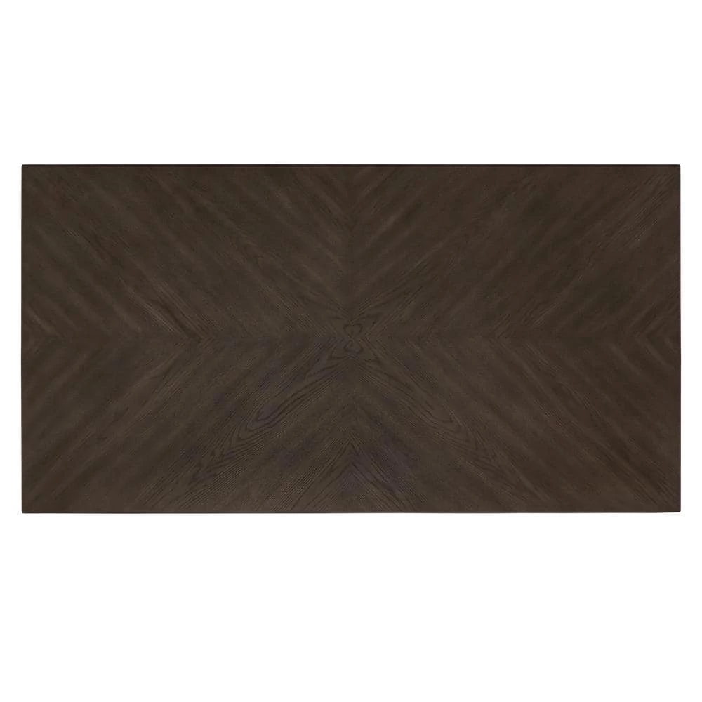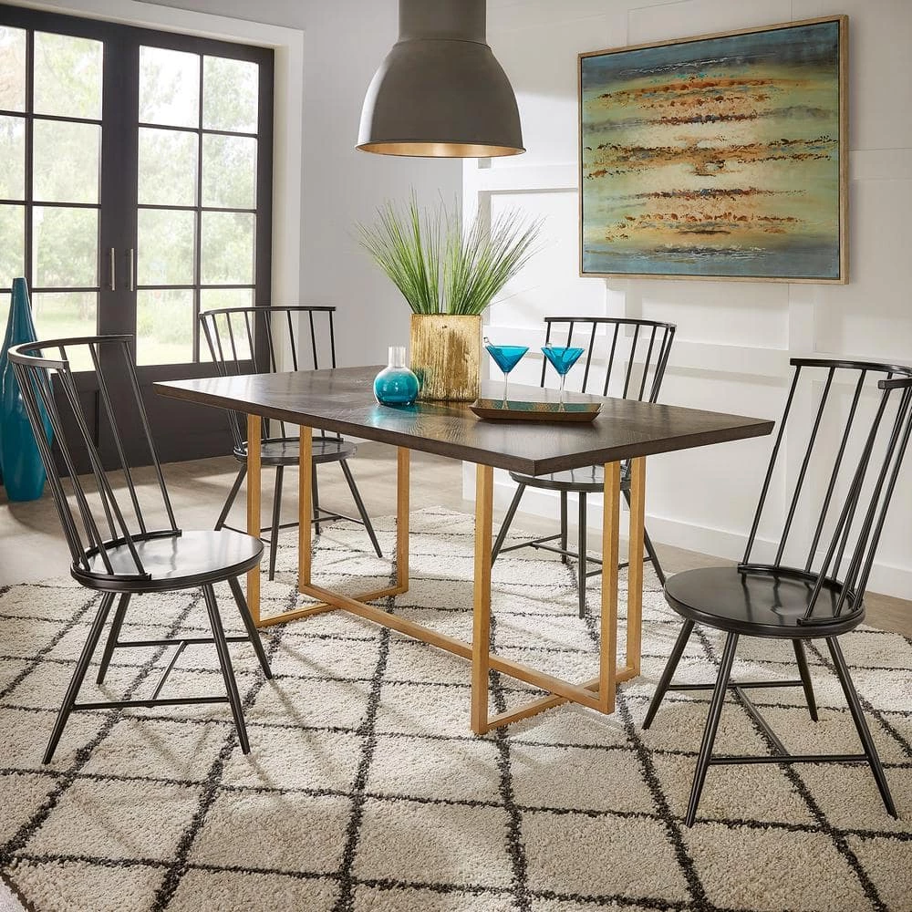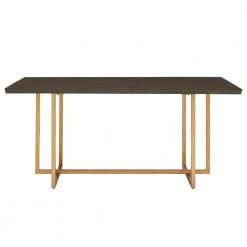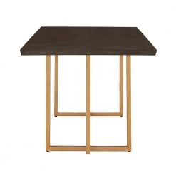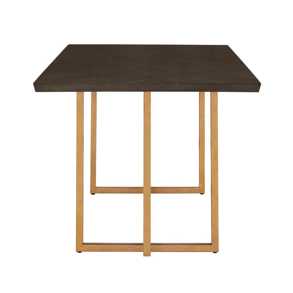 Mix roarin’ 20s glitz with stylish contemporary elements with the Charcoal Brown and Gold Finish 68-inch Rectangular Dining Table from HomeSullivan. This attractive table is effortlessly on-trend with its gorgeous contrast of gold and charcoal grey finishes on the base and table top. Constructed with metal for long-lasting durability, the table’s base delivers a clean, sleek look. The sizable table top is decorated with a lovely, geometric inlay design for a touch of modern elegance. Oak veneer completes the construction of this table to make it easy to clean yet hard to scratch.