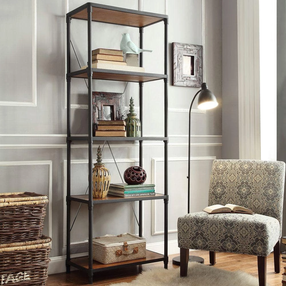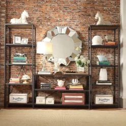 Add a modern rustic look to your room with this industrial bookcase. Perfect for just about any room, the TV Stand and Bookshelves offers plenty of space. This is a perfect addition for any contemporary home.