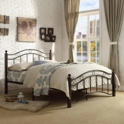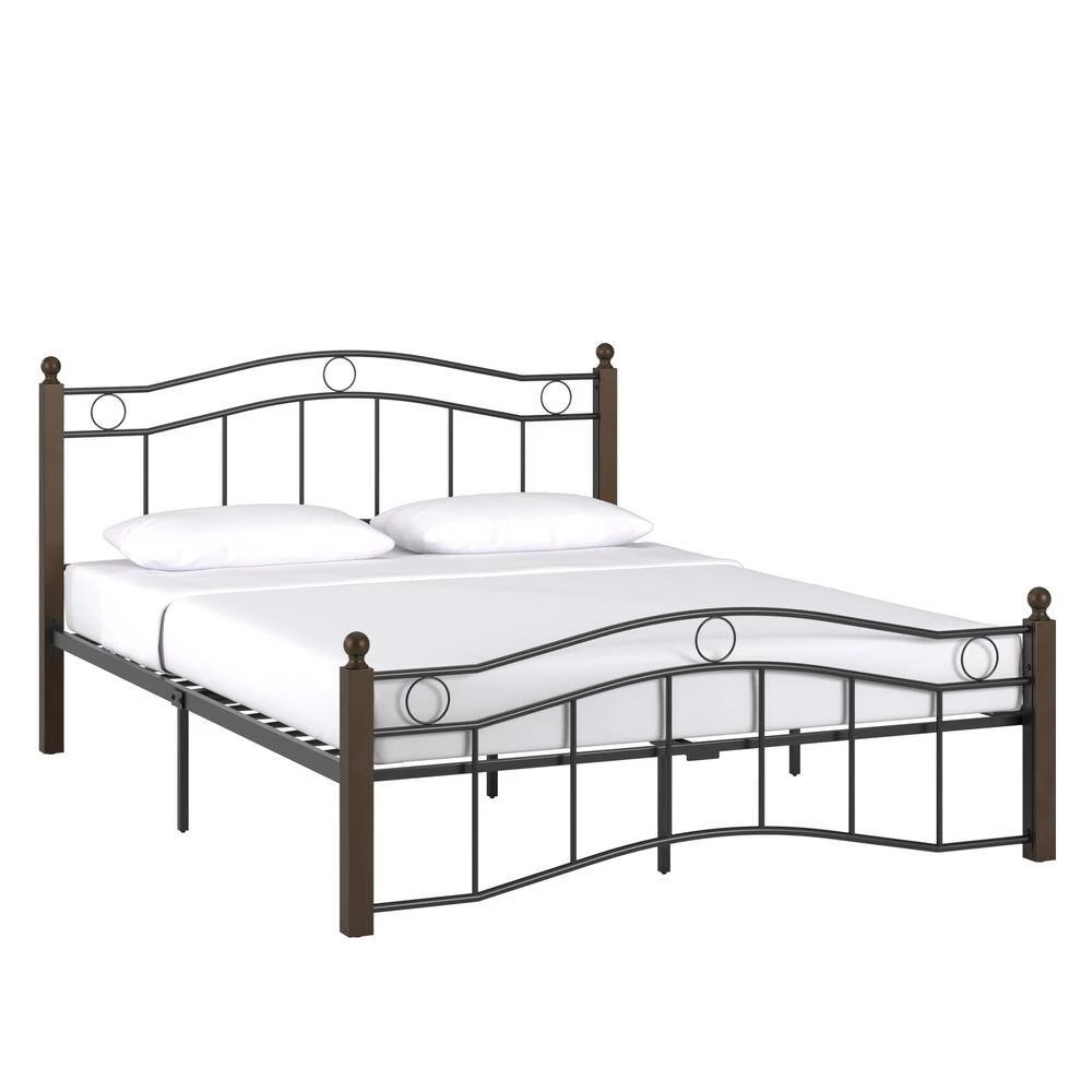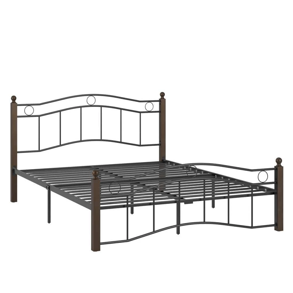 Anchor your sleeping space with classic charm with this Black Metal Queen Platform Bed. Clean-cut lines are balanced out by round, sphere-shaped finials, creating a look of elegance on both the head and footboards. Crafted from sturdy metal for stability and support, this transitional bed features a simple design and a two-tone finish of black and brown for easy matching with existing color schemes.