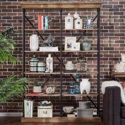 Add bold and rustic character to any room with this industrial style extra-large bookcase. This piece features impeccable style with an industrial look. This is the perfect addition to any home.