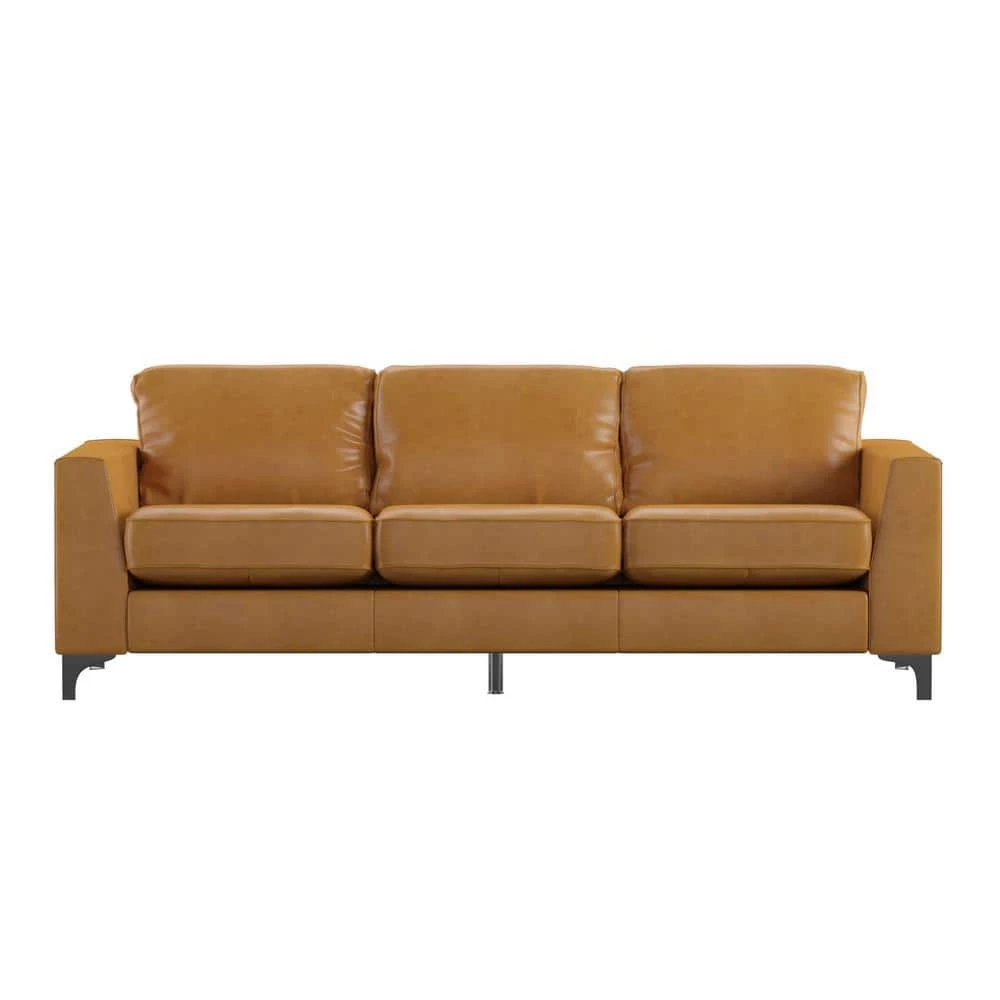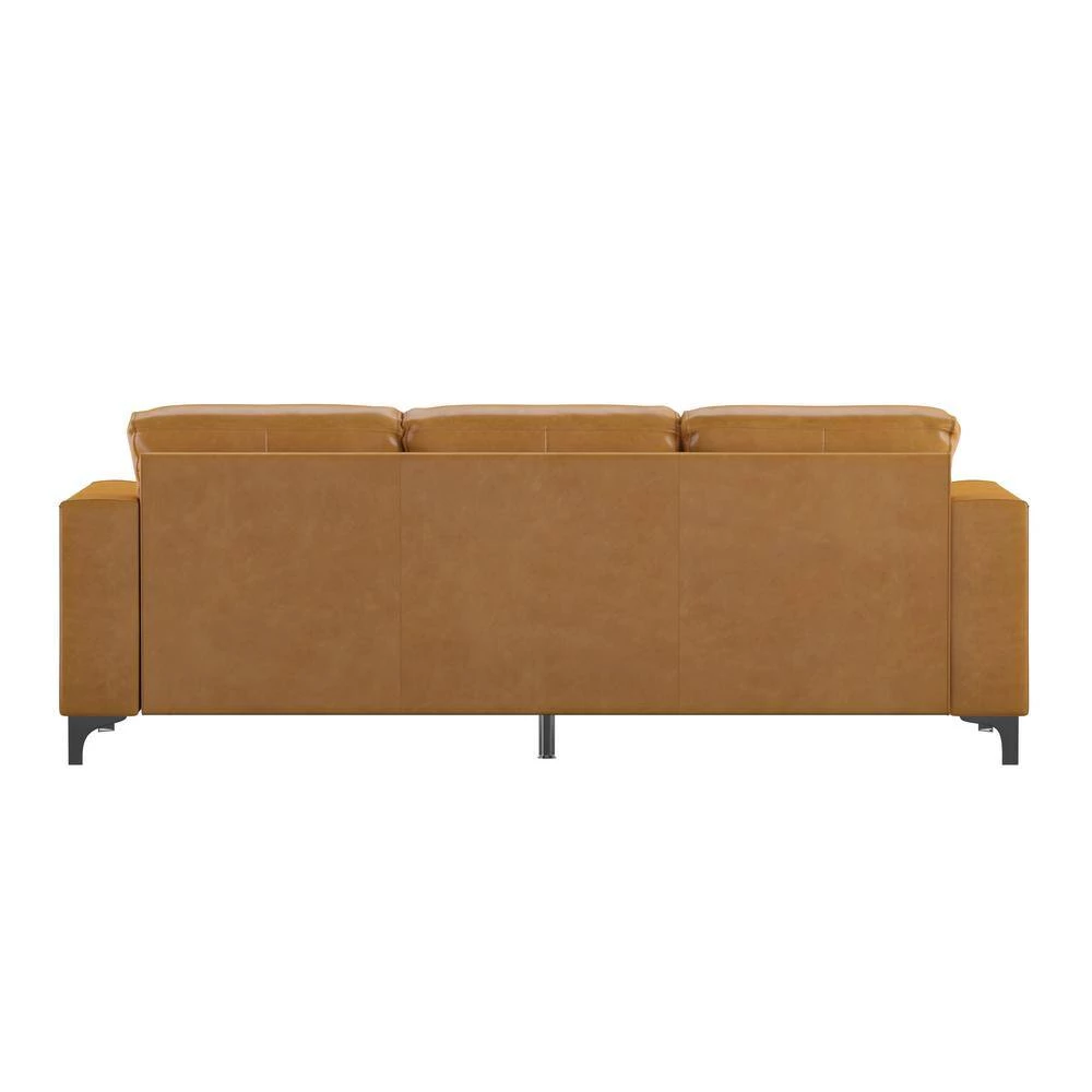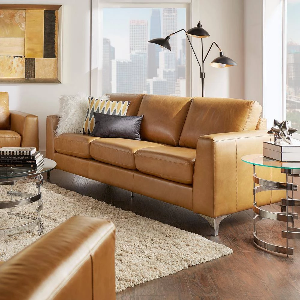Grab a bowl of popcorn and lie down on this HomeSullivan Leather Sofa. Featuring a modern design, this sofa is ideal for achieving a contemporary, fresh look to your home. This rectangular, curved sofa has square arms. It has a luxurious leather build, adding a stylish touch to any room, and leather upholstery, which is known to absorb and release moisture, so it feels less clammy than other materials.