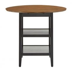 Add a splash of color to your home and express your unique design taste with this Antique Finish 2-Side Drop Leaf Round Counter Height Table. This traditionally designed table features a pedestal style base and a natural wood grain finish, elements that will bring a lovely vintage charm into your home. Casual enough for everyday living and sophisticated enough for your formal dining room, host any occasion with style and functionality. With 2-drop leaf round table top, you’ll have plenty of room for all your guests, perfect for holidays and celebrations, with the added benefit of lower storage for easy access to libations.
