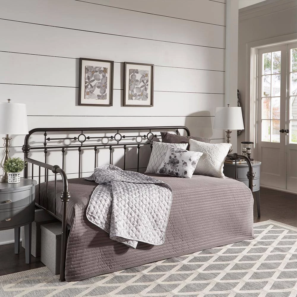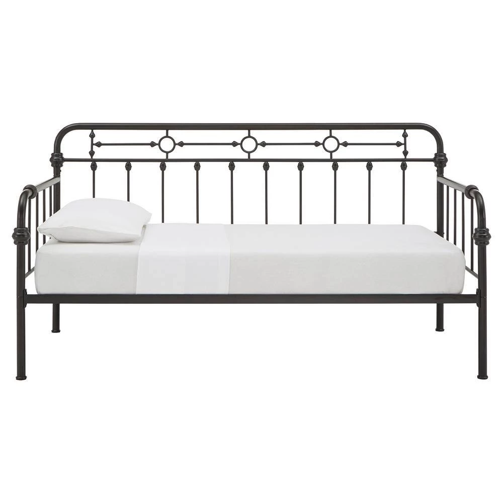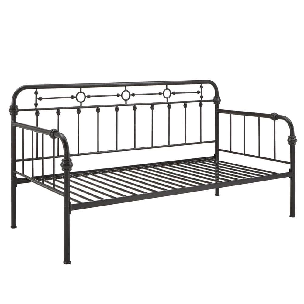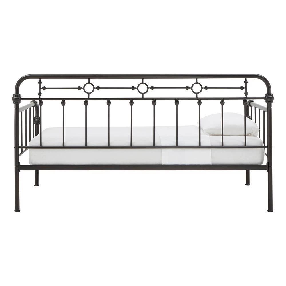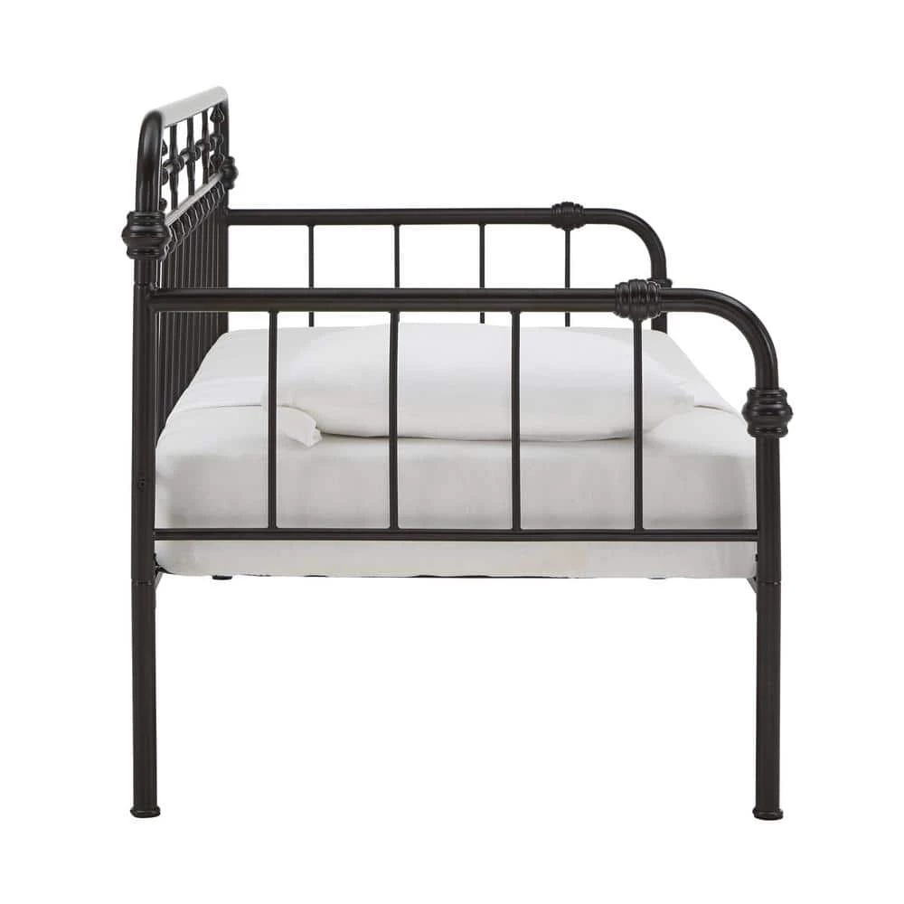Getting two beds in the same space that one bed would usually occupy. Antique Dark Bronze Metal Full Size Daybed with Trundle Bed is a classic and timeless aesthetic piece for your bedroom or living room. This metal daybed with truckle bed features simple and traditional qualities of a curved frame with dainty spindle detailing. Decorative metal accents adds to the bed’s beauty. Trundle bed provides additional sleeping spaces for children, teens and overnight guests.