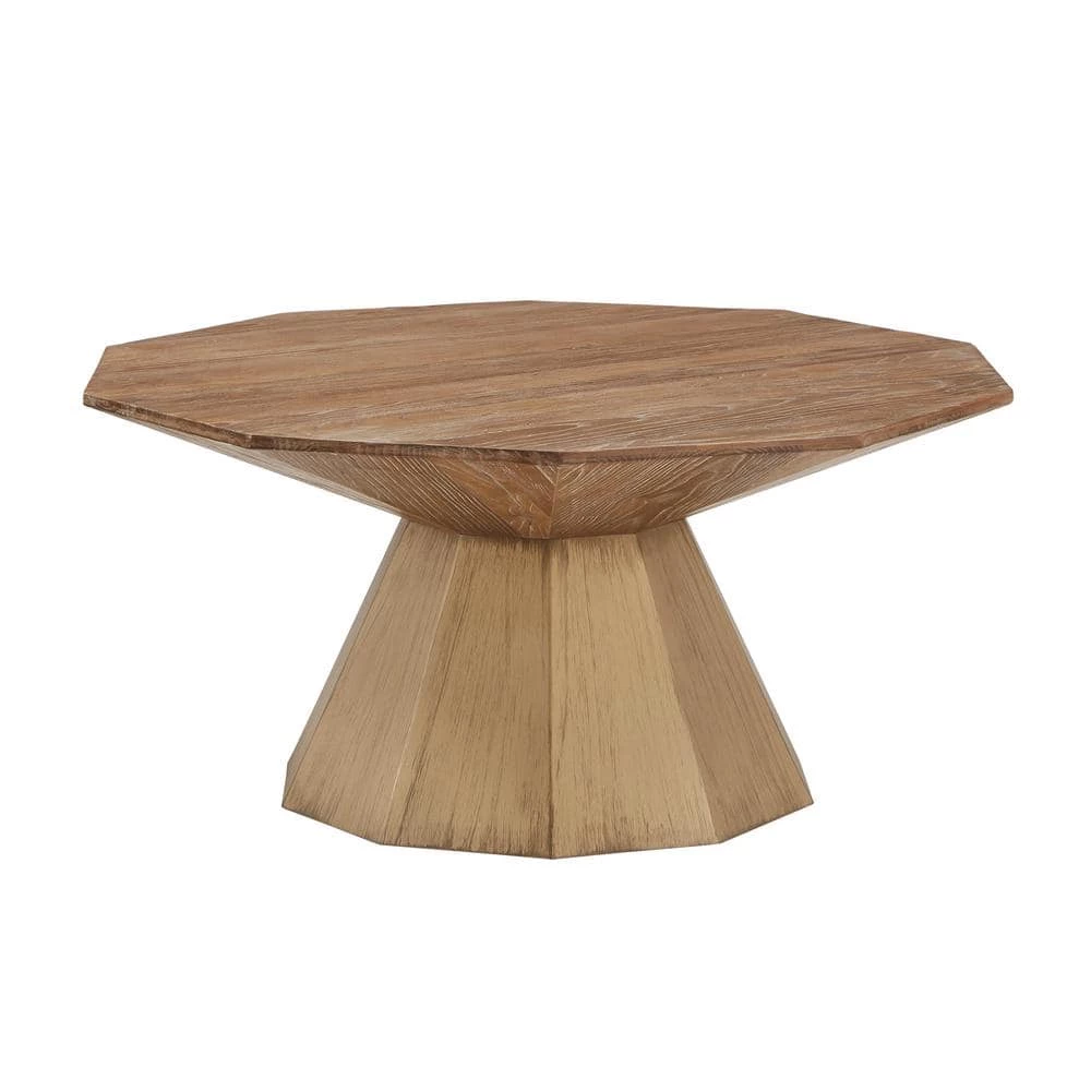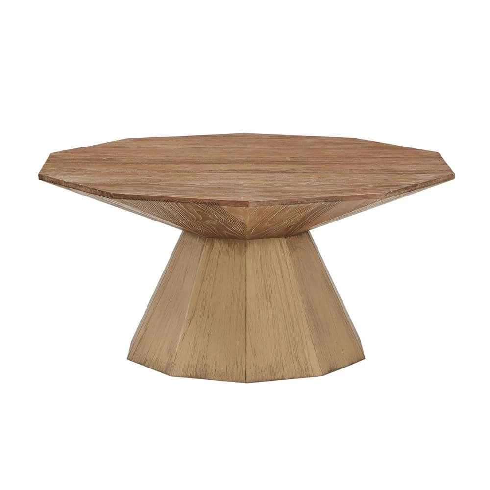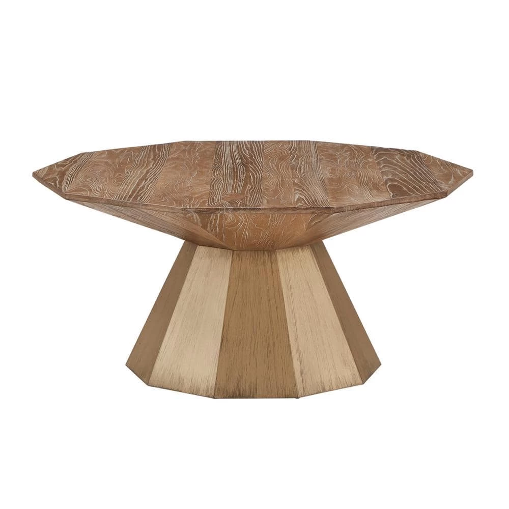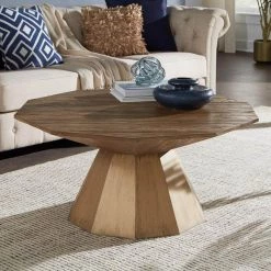 Lend a bold update to your living space with the Antique Gold Reclaimed Style Decagon Coffee Table. With a contemporary design, this state-of-the-art table works great in modern or glam-styled settings. Geometric-inspired, this table features a unique decagon shape for a classy aesthetic and added valuable surface space for your home decor. This chic piece is finished in antique gold to give a touch of luxury that is sure to steal the show.