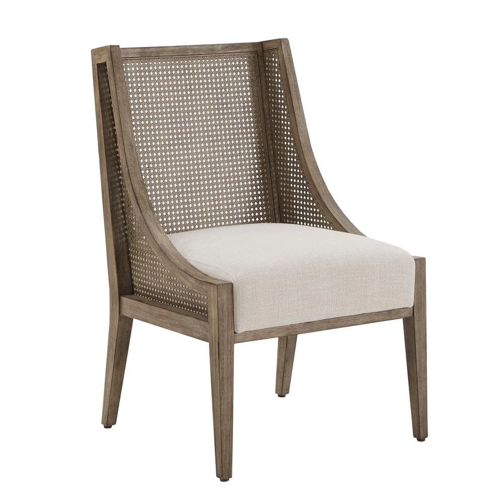Create a warm and inviting vibe in your home with the Antique Grey Oak Cane Accent Chairs (Set of 2) by HomeSullivan. This charming piece has a bohemian look to it with its rattan construction, antique grey oak wood grain finish, and soft beige fabric upholstery. The plush, foam-filled seat offers lasting comfort while the wooden construction ensures ample support and durability.