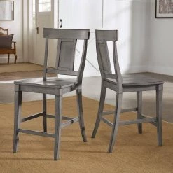 The Panel Back Wood Counter Height Chair (Set of 2) from HomeSullivan brings fresh, cottage charm to your countertops. Stylish and comfortable, a contoured panel back offers proper support while creating a traditional look for any setting. A visible wood grain finish adds some rustic flair and footrests are added to rest weary feet on after a long day. Constructed from durable rubberwood, this set of two chairs comes in a variety of antique finishes to suit your unique taste.
