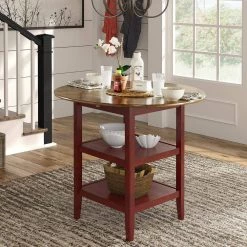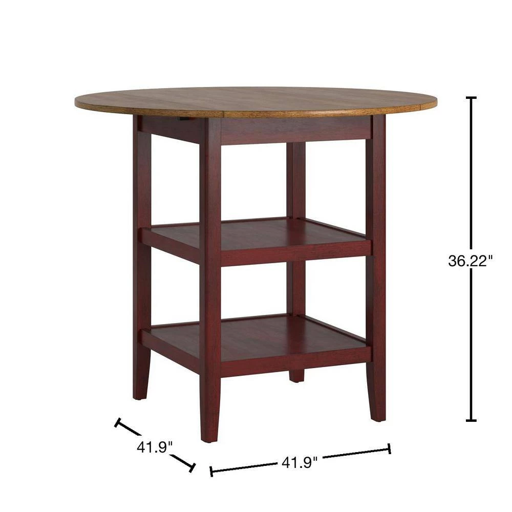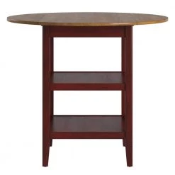 Add a splash of color to your home and express your unique design taste with this Antique Finish 2-Side Drop Leaf Round Counter Height Table. This traditionally designed table features a pedestal style base and a natural wood grain finish, elements that will bring a lovely vintage charm into your home. Casual enough for everyday living and sophisticated enough for your formal dining room, host any occasion with style and functionality. With 2-drop leaf round table top, you’ll have plenty of room for all your guests, perfect for holidays and celebrations, with the added benefit of lower storage for easy access to libations.