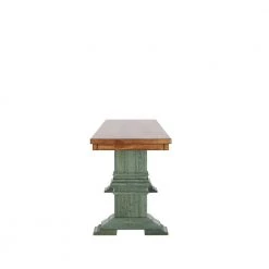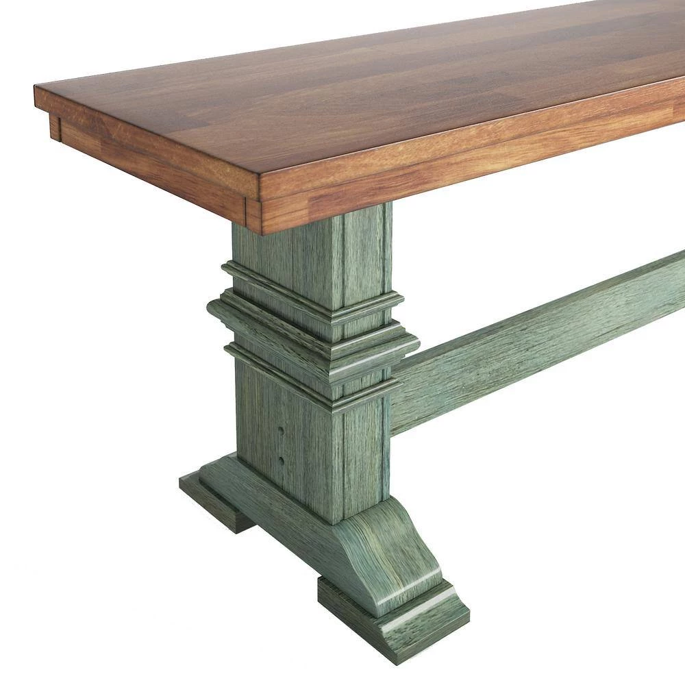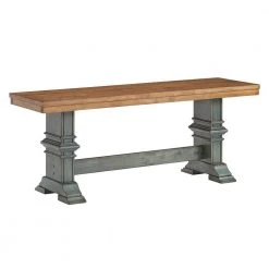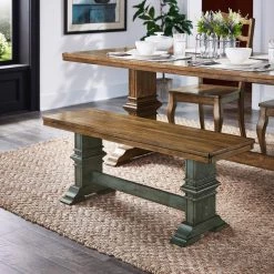 Mix up the seating in your dining room with the Farmhouse Two-Tone Trestle Leg Wood Dining Bench from HomeSullivan. This time-honored bench can take the place of two side chairs for a seating option that is both convenient and stylish. Perfectly blending with rustic elements, this bench features a trestle leg base and a distressed finish. A sturdy rubberwood construction ensures that this traditional bench will last for years to come.