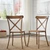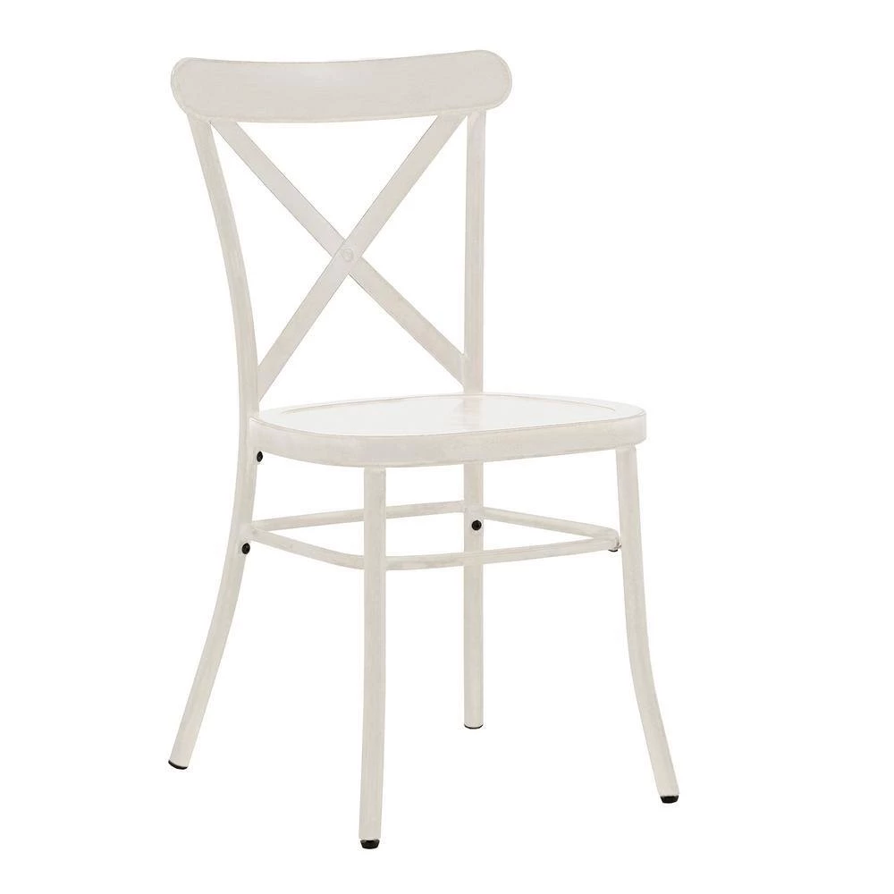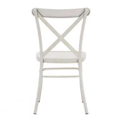 Sleek construction meets a classic design to make up the metal dining chairs. These metal chairs feature a rustic, wood-like appearance and an X-cross chair back, making it the perfect, charming addition to a classic or farmhouse styled home. The streamlined design and lightweight build of these chairs make them perfect for everyday use, while a contoured seat offers overall comfort to family and guests as they dine. Choose from various antique colors and finishes to mix and match your dining setting.