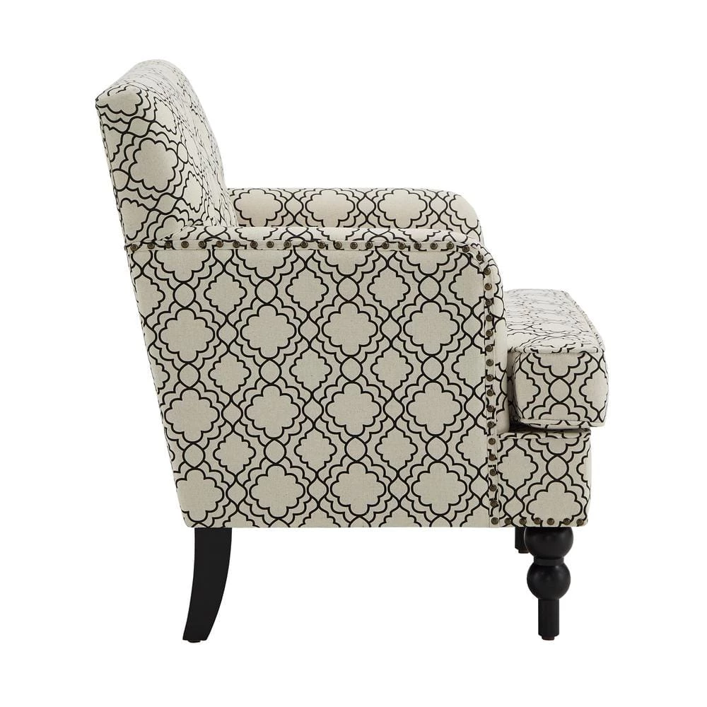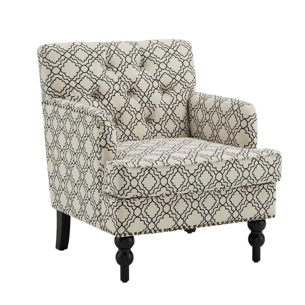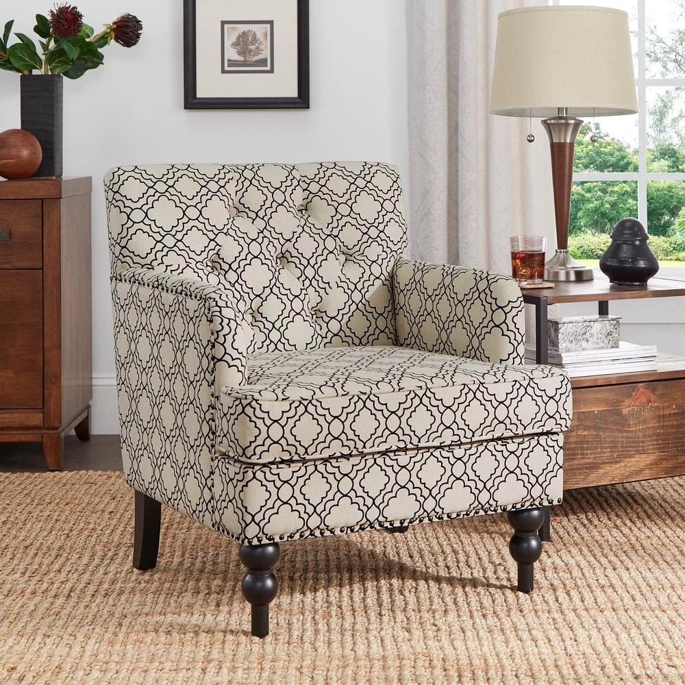 Complete your formal living room ensemble with the Fabric Tufted Club Chair from HomeSullivan. Featuring soft fabric upholstery, plush button tufting, and thick cushioning, this chic chair offers the perfect spot to curl up with your next read. Elegance radiates from this piece, with its nailhead trims, patterned fabric, and black-finished feet, making it a great choice for formal settings.
