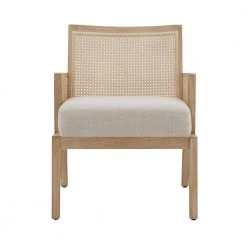Create a warm and inviting vibe in your home with the Natural Finish Fabric Cane Accent Chair by HomeSullivan. This charming piece has a bohemian look to it with its rattan construction, antique natural wood grain finish, and beige fabric. The foam-filled seat cushion and slightly curved backrest offer lasting comfort while the wooden construction ensures ample support and durability.