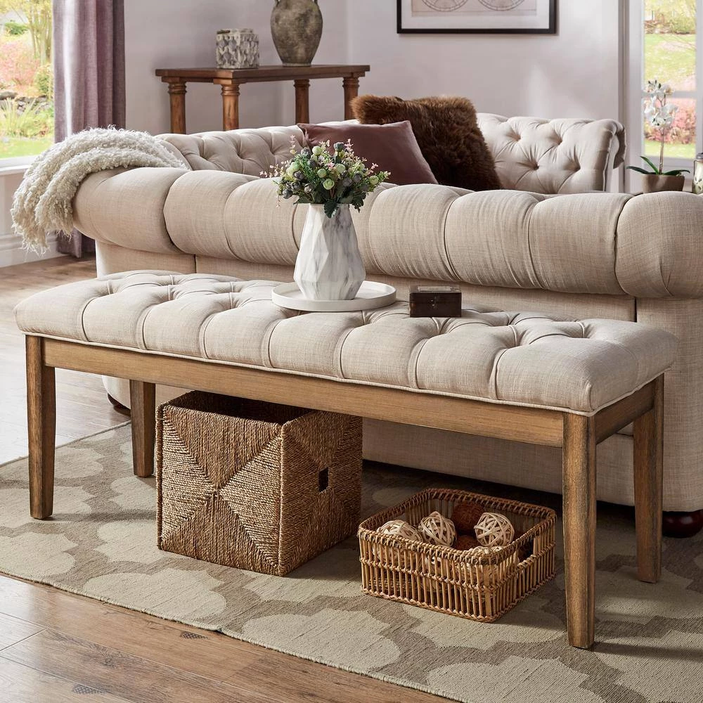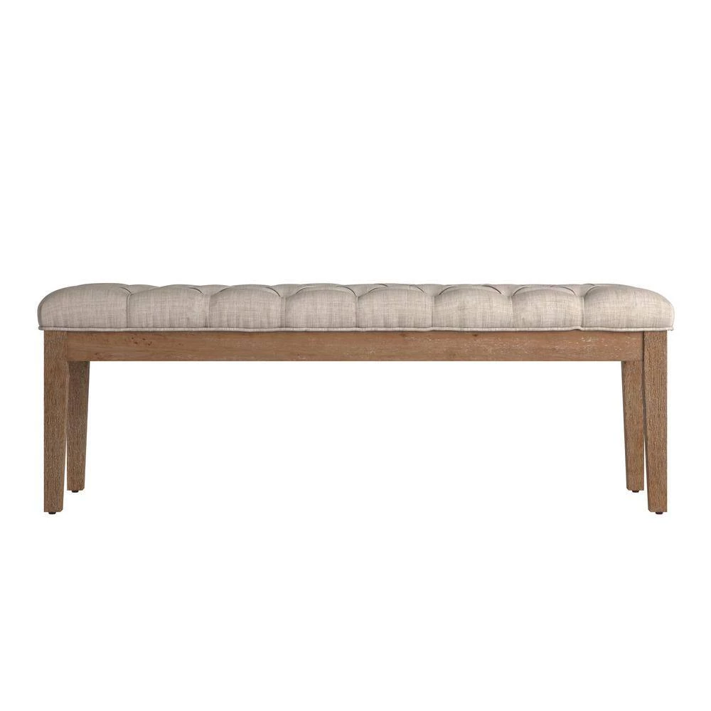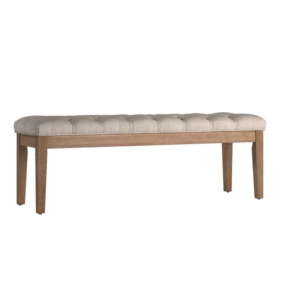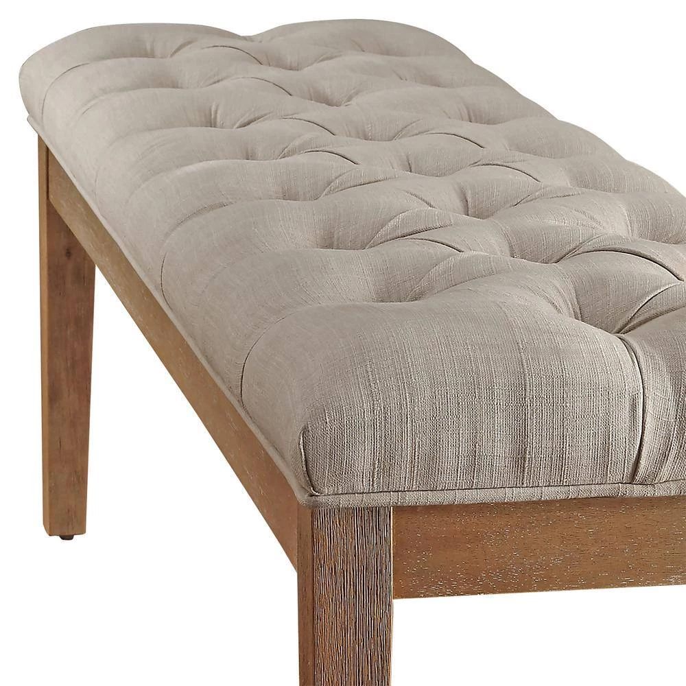 Place the HomeSullivan Bench by your front door or use it as a beautiful accent piece in your living room. This bench has a modern style, making it the perfect choice for any sleek home. It is made of fabric and is upholstered with linen, offering a very compact material that will last and extremely comfortable to sit on. Featuring button tufting, it is excellent for adding visual interest to your furniture in order to create a sophisticated feel.