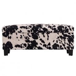 Enhance your storage capacity in style with the Cow Hide Print Storage Bench available in Multiple Colors. This Cowhide storage bench features a top that is easy to lift revealing a spacious compartment that’s good for your blankets, pillows, kid’s toys or magazines. The cow hide storage space gives you a unique space to keep things organized and out of sight. Good for many different rooms in the house, this piece opens simply and can be used by most family members. The bedroom storage bench makes a stylish room accessory and brings a bold design to your living room or bedroom to make it pop.