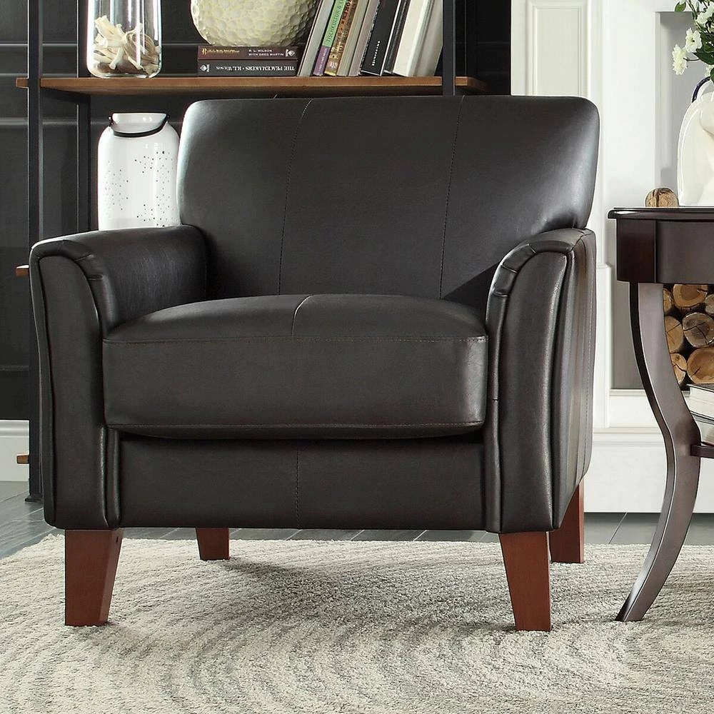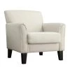 Give your living room, family room or den a classic touch with this elegant living room accent chair. This accent chair provides a stylish, yet functional addition to your living room, basement, TV room or home office. Featuring white linen, dark espresso wood legs this chair combines traditional elements with a contemporary style to create a timeless look. Built on a sturdy wood frame this accent chair will last years to com. Enjoy this beautiful and comfortable accent chair in your home.