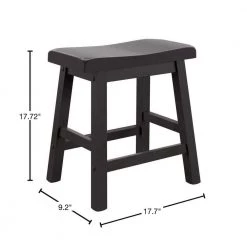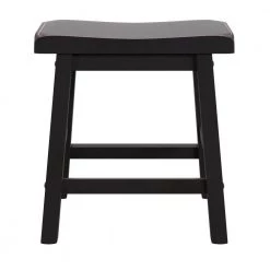 The Black Saddleback Stools from HomeSullivan are ideal for a wide range of decor styles. Sleek and solid with rubberwood construction in a black sand-through finish, these stools are perfect for a bar, dining nook or kitchen island. Featuring a curved seat for ultra-comfort, these stools are ready to assemble and are just the right size for tucking under a bar or table for neat and convenient storage.