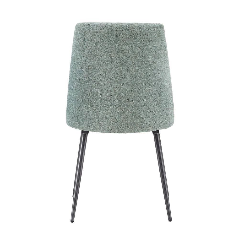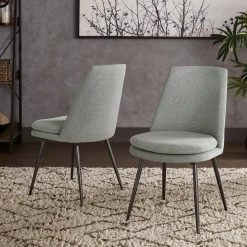Mid-century modern is brought into the present day with the Chenille Fabric Dining Chairs (Set of 2) by HomeSullivan. This chic set includes two chairs, perfect for cozy, casual dining. Founded on sturdy black metal bases, the seats are upholstered with chenille fabric for comfort at every meal. These chairs can be paired with a variety of color schemes and design styles.