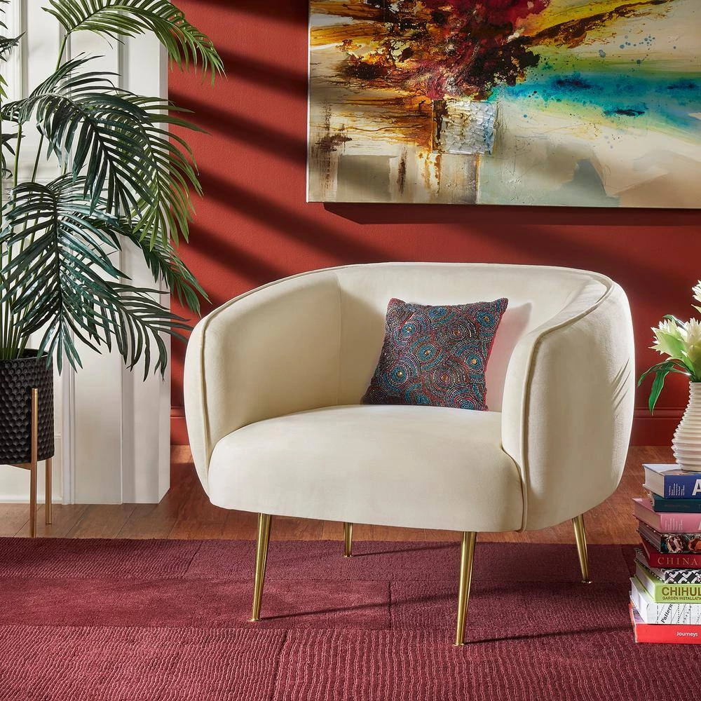 Brass Beige Velvet Upholstered Accent Chair by HomeSullivan