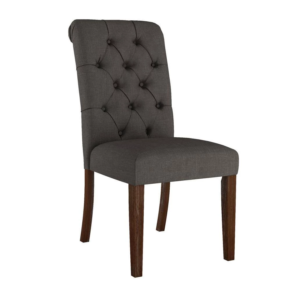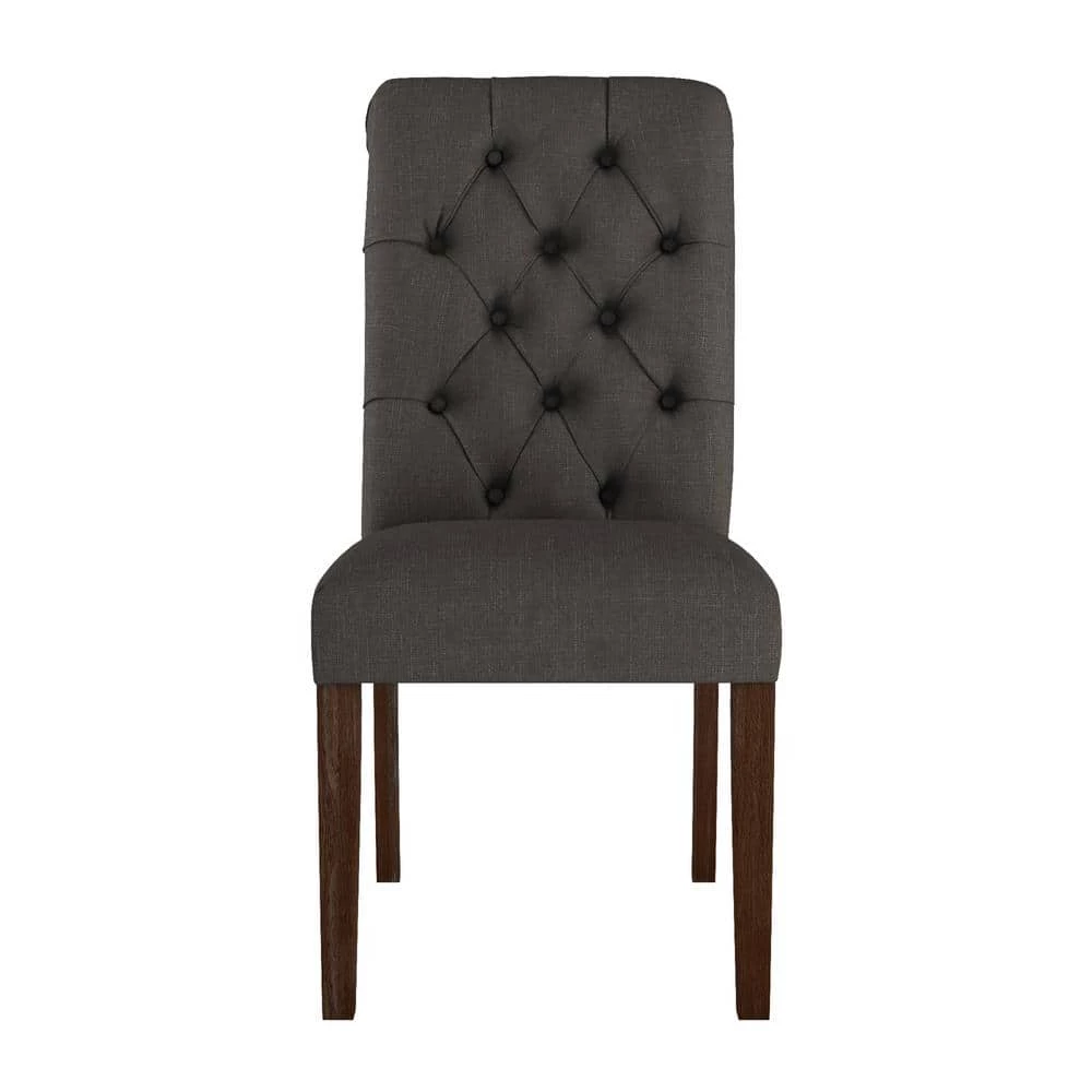 Crafted with resilient rubber wood, let the Linen Button Tufted Dining Chair (Set of 2) charm everyone at your next dinner party. This armless, L-shaped Parsons chair has enchanting button tufting and soft linen fabric. The mocha finish on the legs only elevate the elegant farmhouse look. This set caters to your style with several sharp color options.