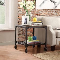The HomeSullivan Cabella End Table is the perfect accent piece to redesign any space. With a rustic style, this end table adds natural beauty and charm to your interior design. It has storage space, which is a convenient place to stash away everything from the TV remote to a stack of magazines. Made with a wooden top, it will complement any design scheme. It features a metal frame, making it perfect for adding modern aesthetics to your interior design.