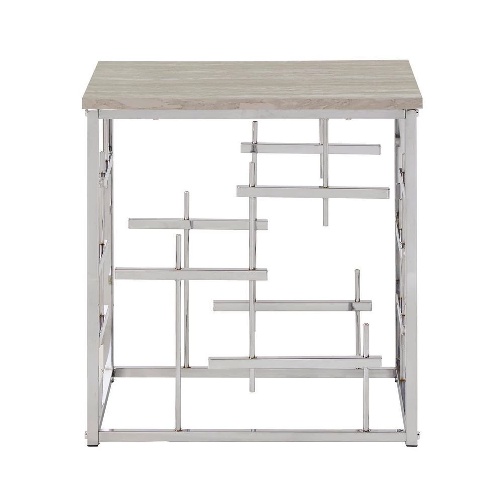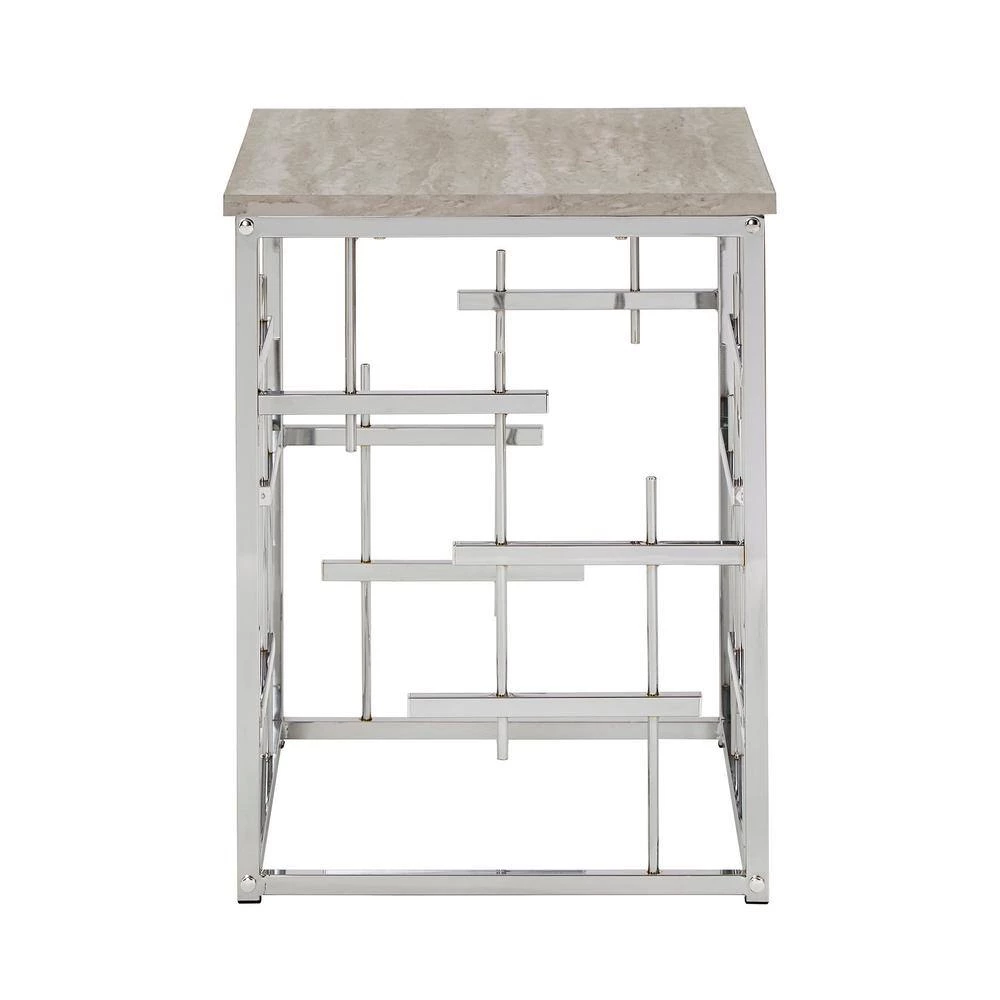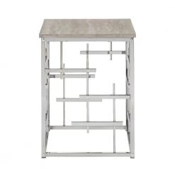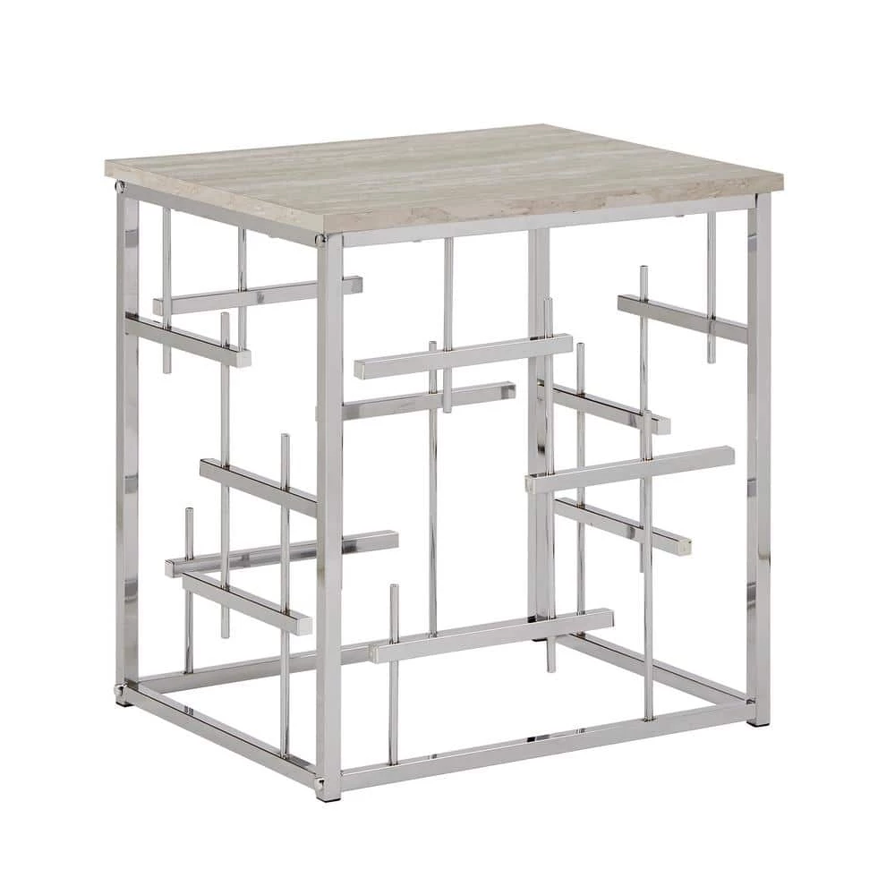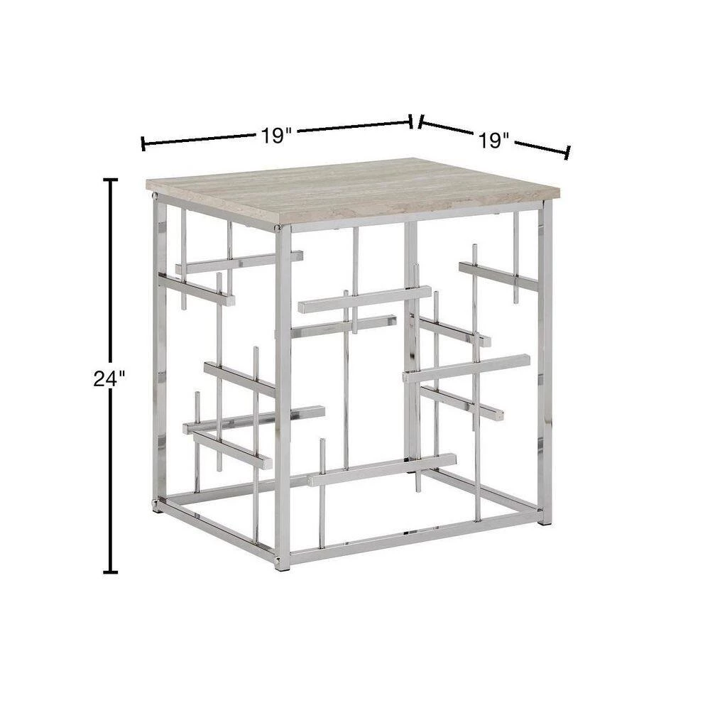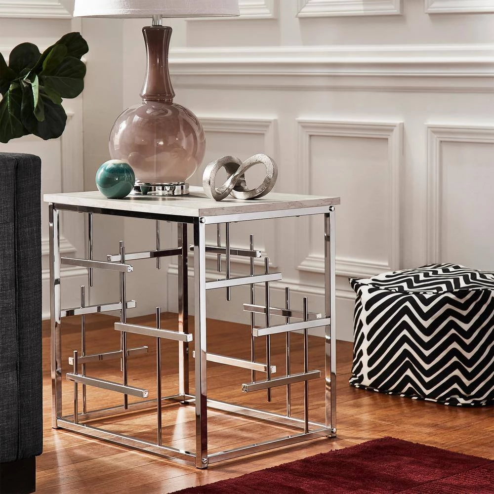 Bold style and modern sophistication accurately describe the Chrome Finish and White Faux Marble Top End Table. This extravagant end table showcases a crisp and innovative design that works great in contemporary or glam settings. Clean lines decorate the base in eclectic style and is polished off in a lively chrome finish. The smooth table top features white faux marble that stunningly matches the chrome finish of the base and allows ample surface space for all your household essentials.